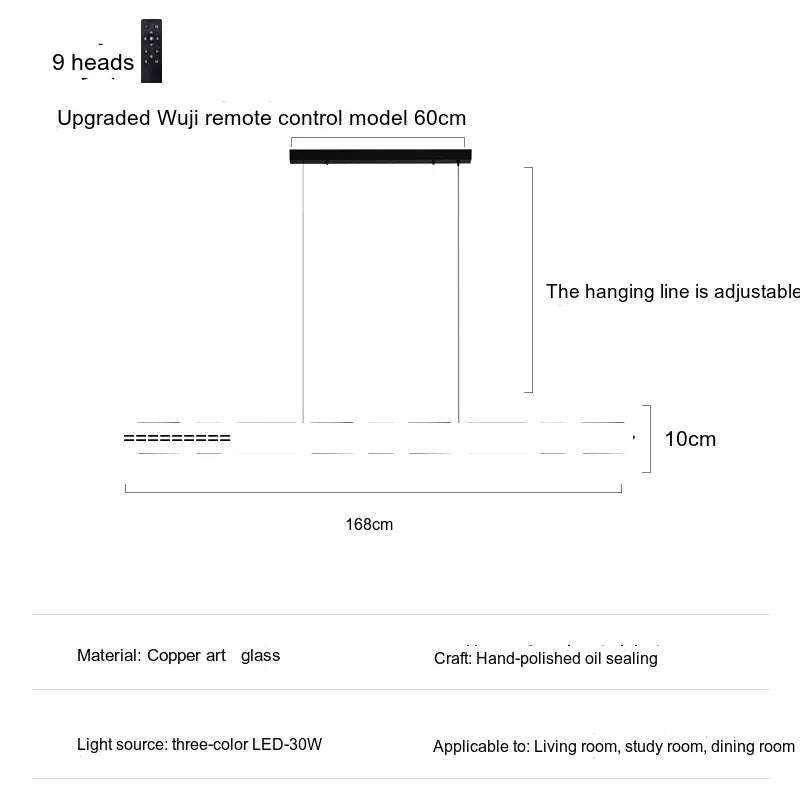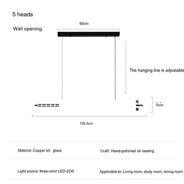 Crafted from premium-grade copper and glass, the Santiago ceiling lamp boasts a stunning copper-black finish that adds a contemporary flair to your surroundings. The design features clean lines and a seamless silhouette, making it an ideal statement piece for any modern aesthetic. The lamp includes multiple light sources, available in configurations of 5, 7, or 9 heads, providing an array of lighting options tailored to your needs.