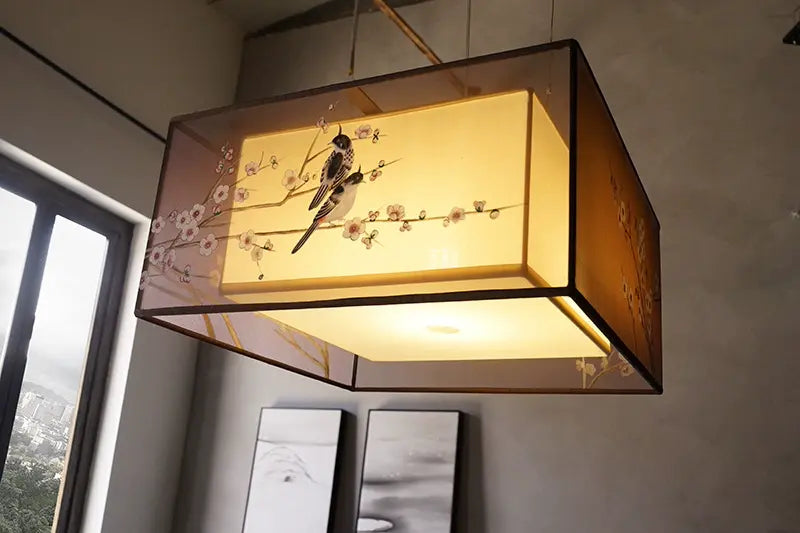 The Haruki ceiling lamp is a visual masterpiece that features intricate patterns and motifs, expertly designed to enhance the aesthetic value of your environment. The use of premium silk material provides a soft and warm glow, creating a welcoming atmosphere in any room, including your dining area, living room, or study. With design variants such as the Crane chandelier and Flower and Bird chandelier, this lamp is tailored to cater to diverse tastes and ensures that you find the perfect fit for your home decor.