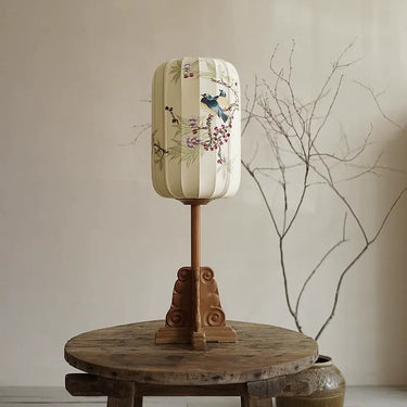 DISPLAY ASIANART Juniper Elegance Hand-Painted Silk Retro Lantern Table Lamp