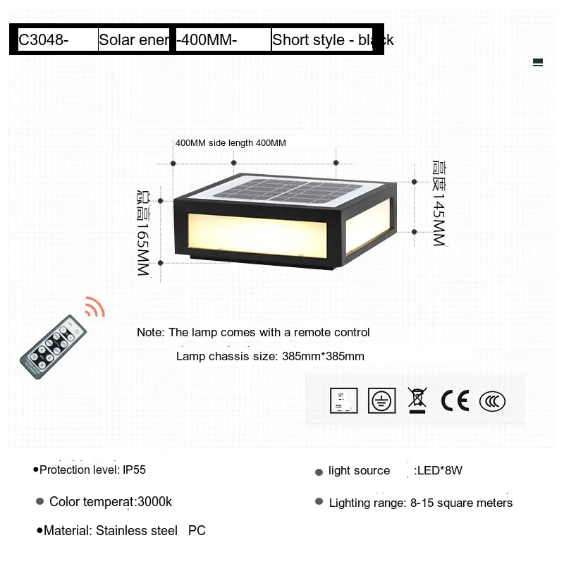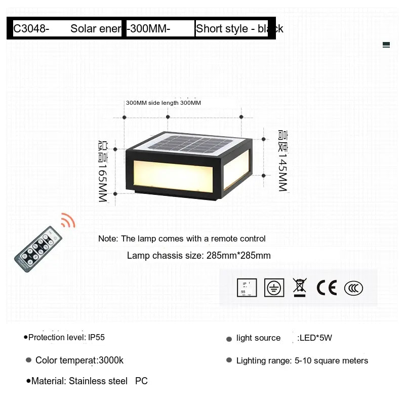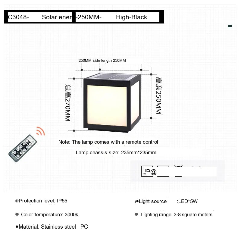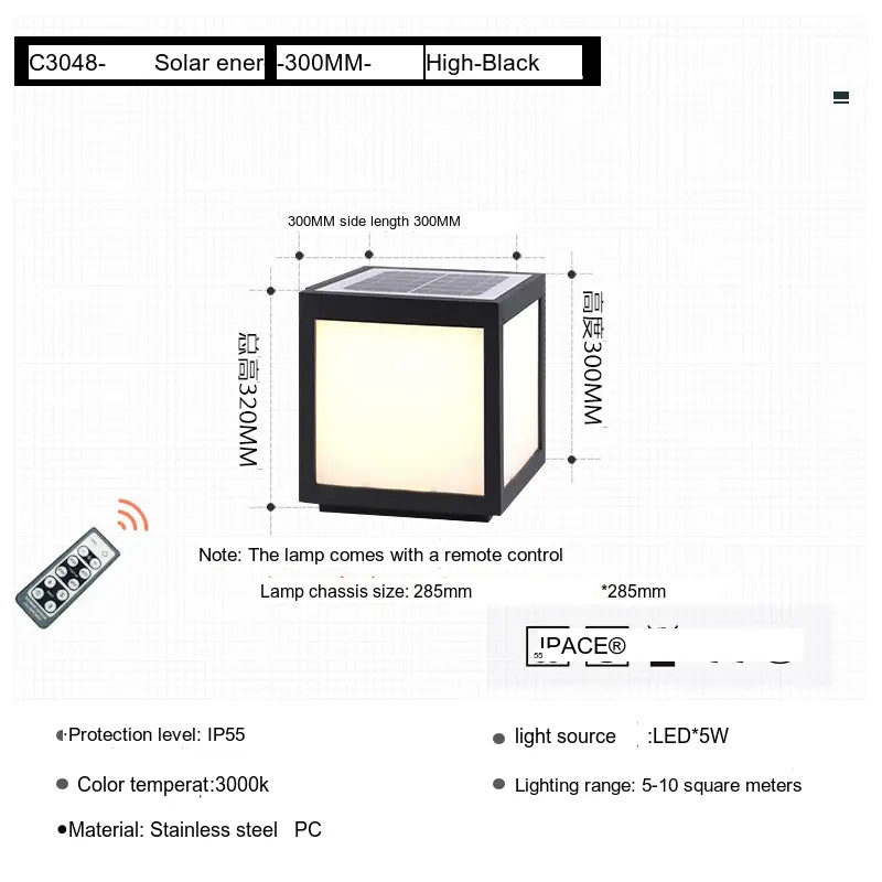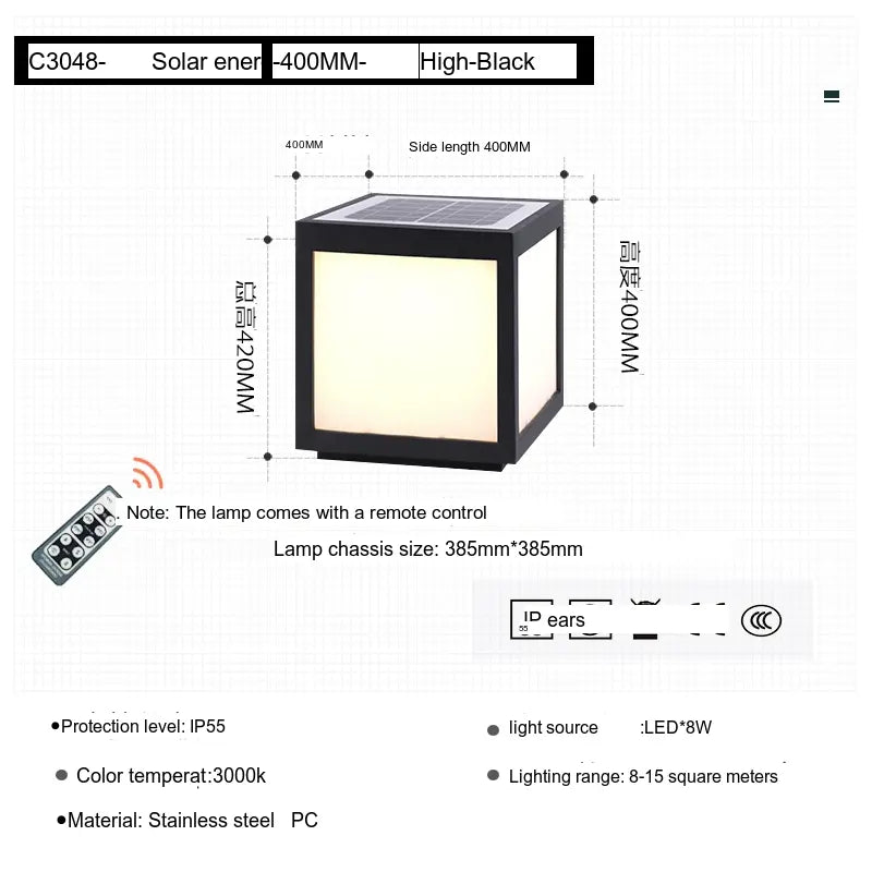 - Durable Construction: The lamp body is made from high-quality iron, ensuring long-term durability and resistance to harsh weather conditions. The lampshade is crafted from high-impact PC (Polycarbonate), making it resistant to scratches and ensuring high light transparency.