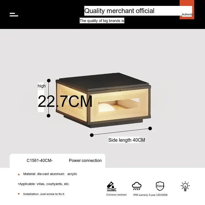 The HANDU Inigo Lantern boasts a robust body made from die-cast aluminum, ensuring it is both strong and resistant to rust and corrosion. The clean lines and contemporary design make it a perfect match for any modern outdoor setting. Choose from a range of sizes, including 20CM, 25CM, 30CM, and 40CM models to fit your space perfectly. Each lantern is meticulously crafted and designed to withstand the elements, utilizing an IP65 waterproof rating to ensure longevity in any weather condition.