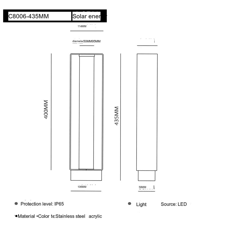 • Color Options: Multiple power connection options available - C8006-149MM, C8006-435MM, C8006-600MM (with both electrical and solar energy variants)