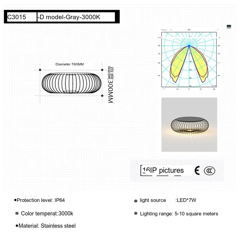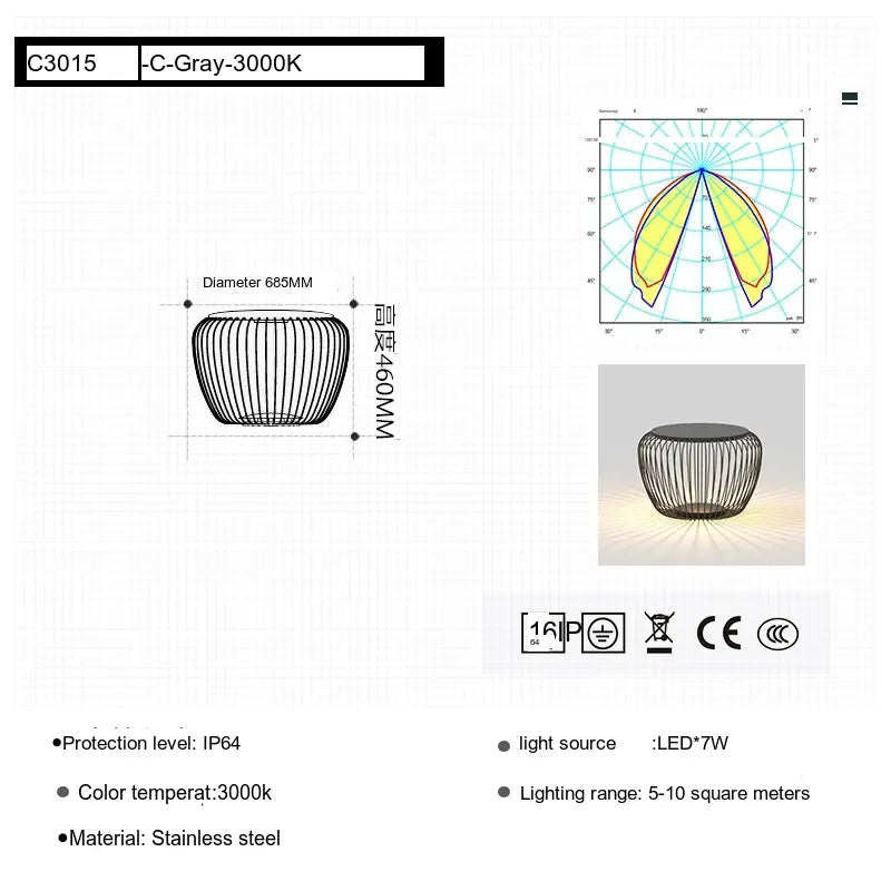 Constructed from high-quality stainless steel, both the lamp body and lampshade exhibit outstanding resistance to rust and corrosion. The innovative powder coating adds an extra layer of protection, ensuring that the lights maintain their appearance and functionality even under harsh weather conditions. With an IP65 rating, these lights are built to withstand rain, dust, and varying outdoor elements, making them a worry-free addition to your outdoor decor.