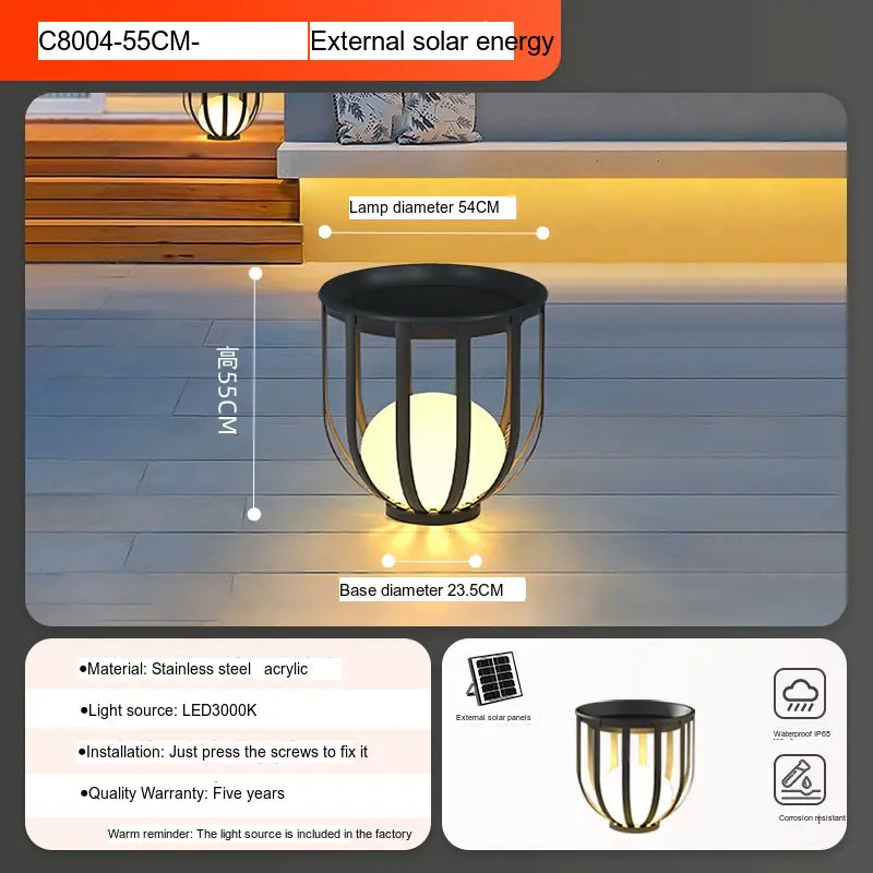 Constructed from thickened stainless steel, the lamp body is both robust and aesthetically pleasing. It's designed to resist rust and corrosion, ensuring longevity and reliability in diverse weather conditions. The lampshade is made with a high-quality PC material, providing adequate protection for the LED light source while allowing optimal light diffusion.