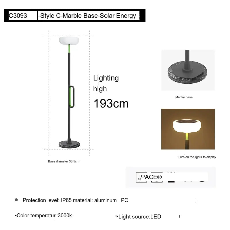 Constructed with an aluminum lamp body and a robust marble base, the Mikaela lamp is built to withstand the elements. With an IP65 protection level, it is resistant to dust and water, ensuring reliability and longevity in various outdoor environments. Whether it’s rain, snow, or intense sunlight, this lamp can handle it all while maintaining its performance.