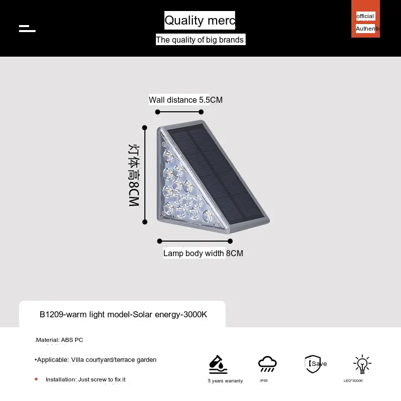 - Energy Efficient: The lamp operates on just 5W of power, significantly reducing electricity costs while utilizing renewable energy. The voltage is ≤36V (inclusive), making it safe for outdoor use.