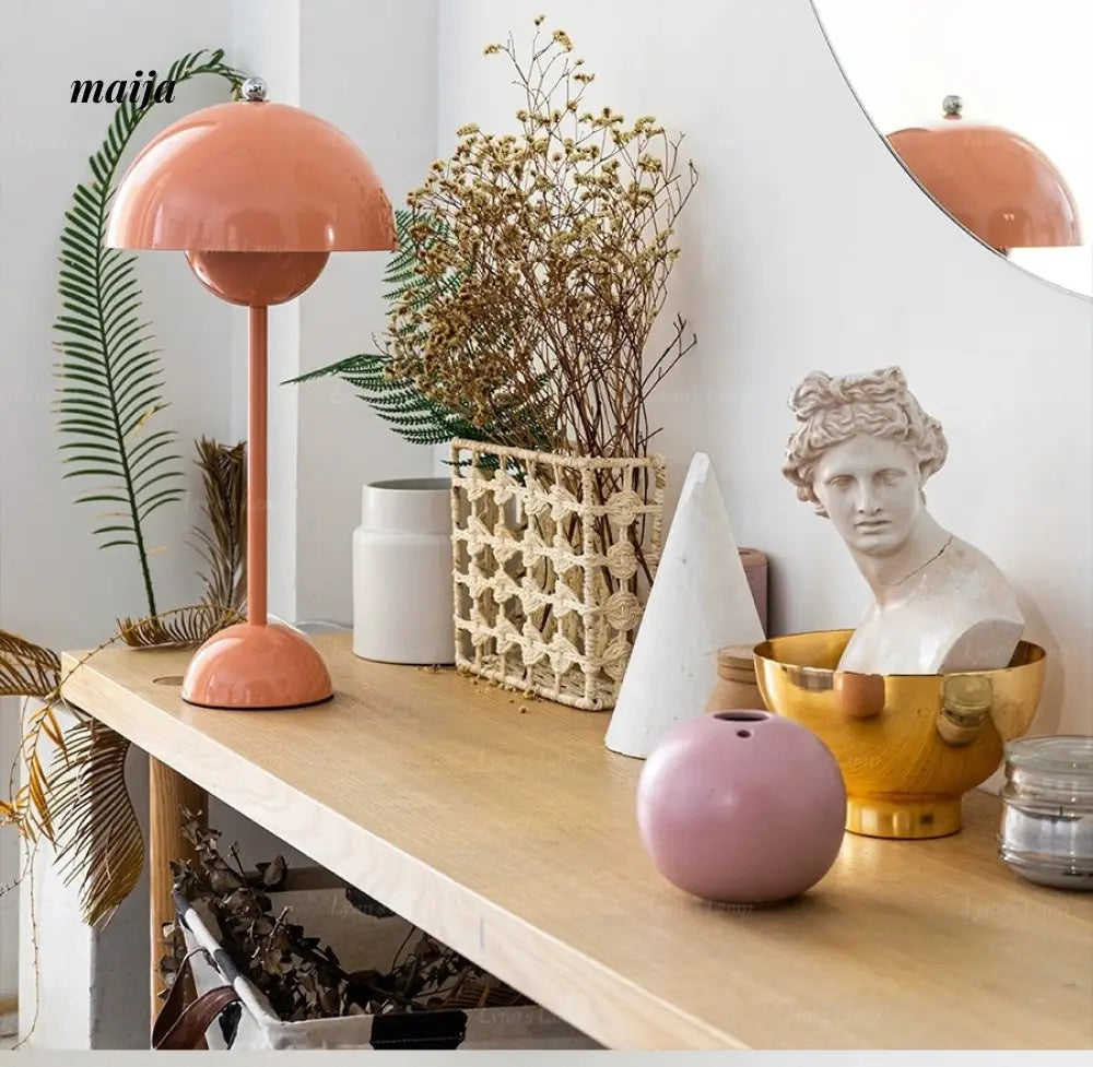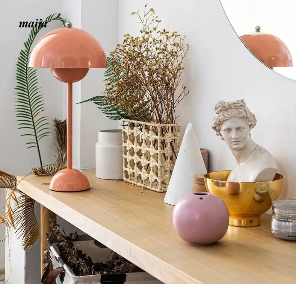 The LYNN Table Lamp showcases a stunning clove mushroom silhouette that reflects Scandinavian design principles. Its soft curves and elegant form make it a great fit for various settings, whether on a bedside table, desk, or as a decorative accent in your living room. Available in multiple color classifications including Sakura Pink, Antique Gold, Technology Silver, Deep Red, Pearl White, Mustard Yellow, Dark Green, Matte Black, and Cream Gray, this lamp offers versatility to match your personal style and home palette.