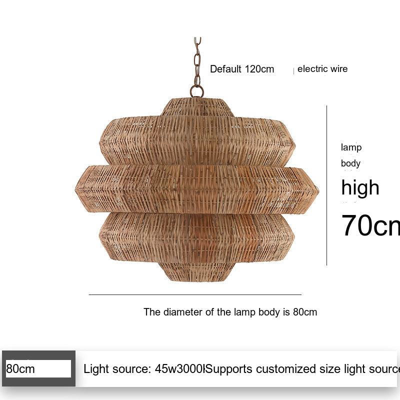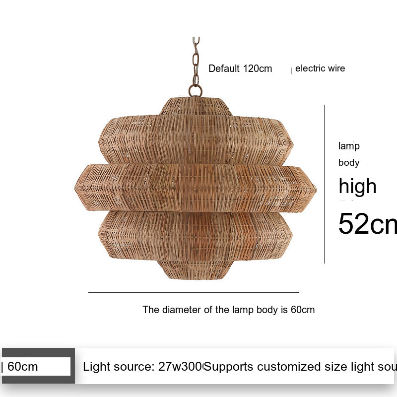The Bartholomew ceiling lamp is inspired by nature, boasting a beautiful fishing line design that captures the fluidity and dynamism of water. The lamp body is primarily crafted from high-quality iron, providing a robust base that perfectly contrasts with the delicate lamp shades made from grass vine and willow weaving. This combination of materials not only enhances the visual appeal but also promotes sustainability, as it utilizes natural elements.