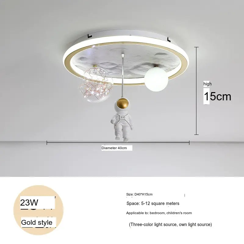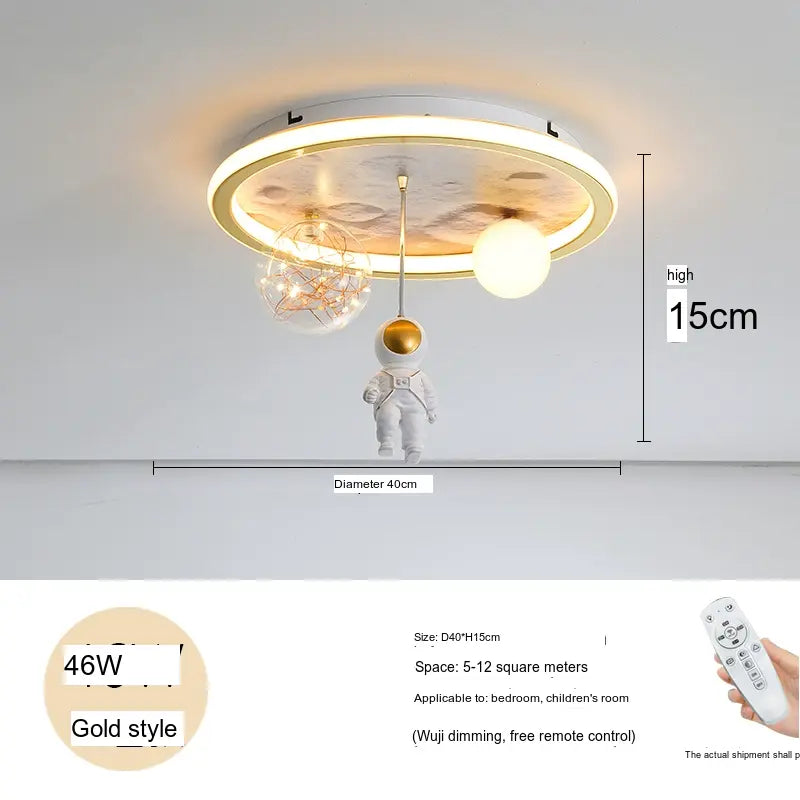 The light features a charming astronaut design, captivating your child's imagination and nurturing their love for space exploration. With a diameter of 40cm and a minimalistic height of just 15cm, this light subtly complements the decor without overwhelming the space. Its simple yet modern style seamlessly fits into a variety of room themes — from outer space adventures to dreamy pastel settings.
