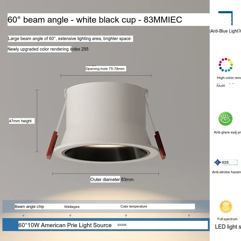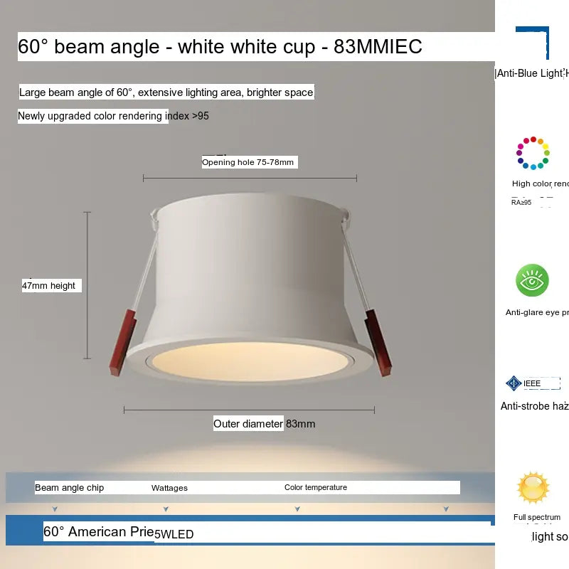 The intelligent engineering minimizes glare with a beam angle of 60°, enhancing the comfort of your lighting experience. Say goodbye to harsh lights that strain your eyes and welcome a more gentle illumination that enhances the ambiance of your space.