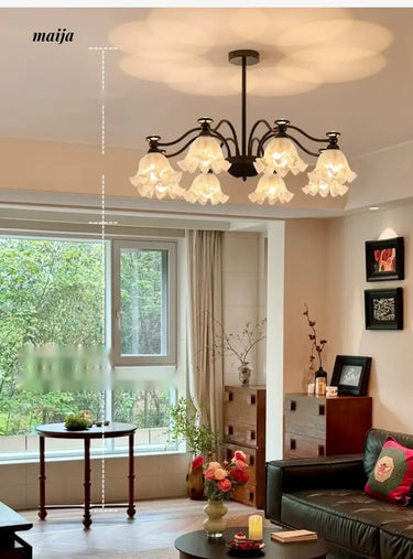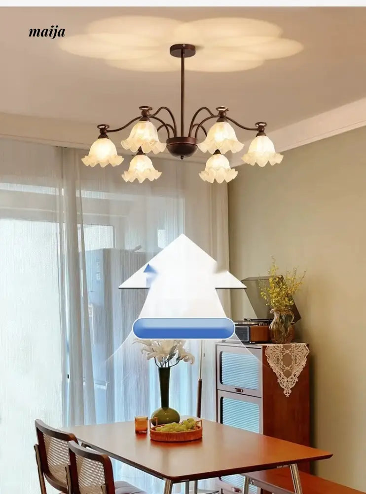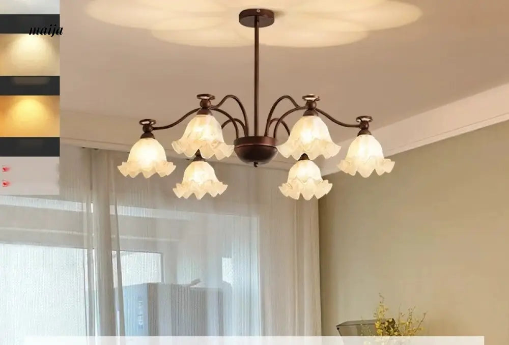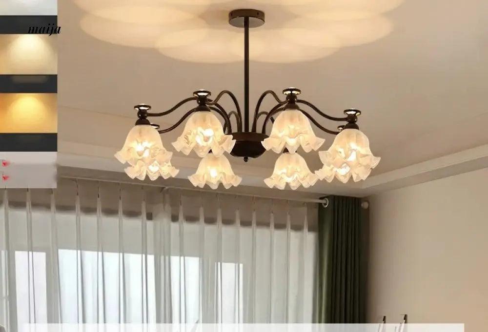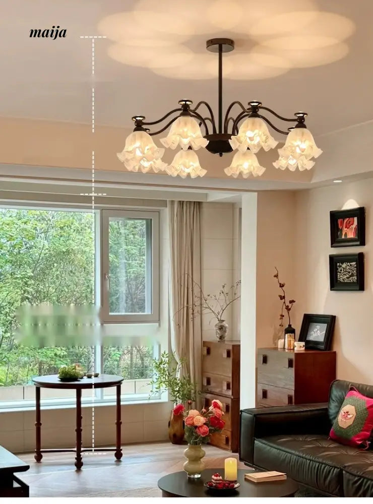 The NANCY Lily of the Valley Chandelier in a retro American style beautifully merges classic aesthetics with modern functionality. Designed to add a touch of elegance and historical charm to any space, this chandelier is suited perfectly for those who appreciate art and design embedded within their living environment.