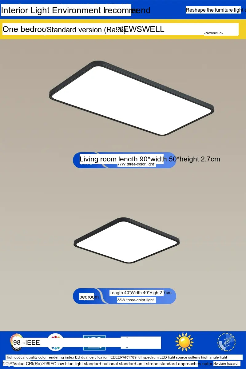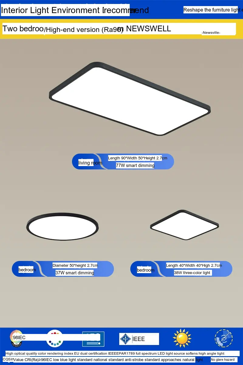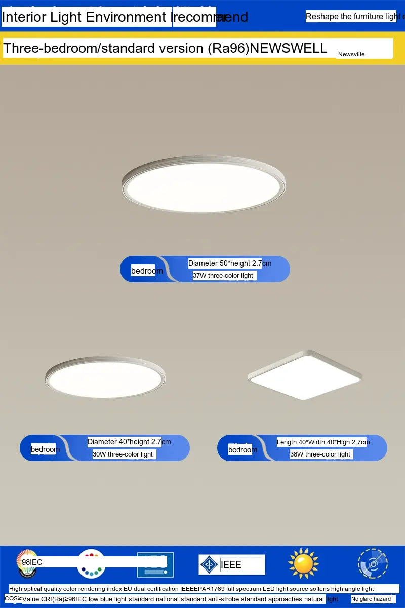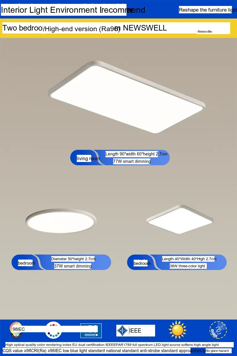 Enhance your living environment with the NEWVILLE Aurelia Sleek Eye-Care Ceiling Light—a luxurious yet practical lighting solution that combines health-conscious technology with stunning design.
