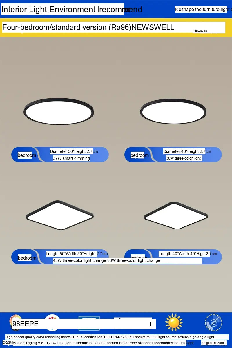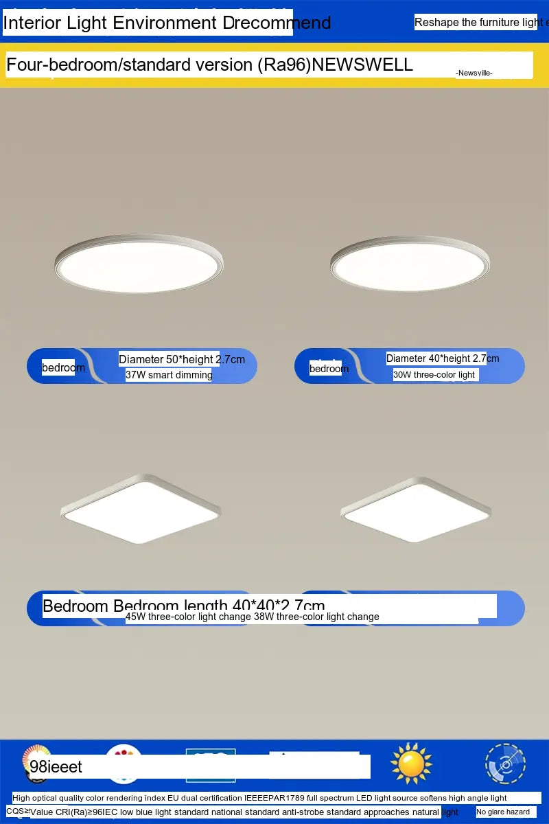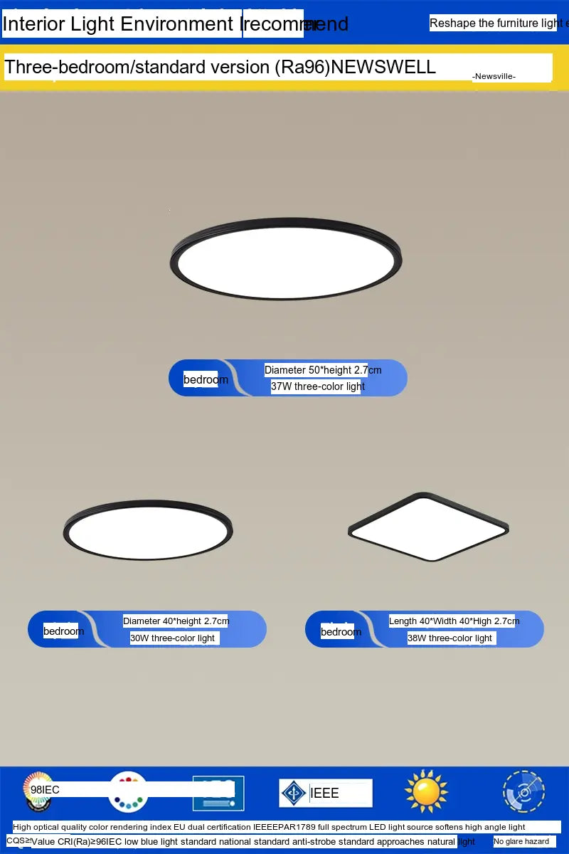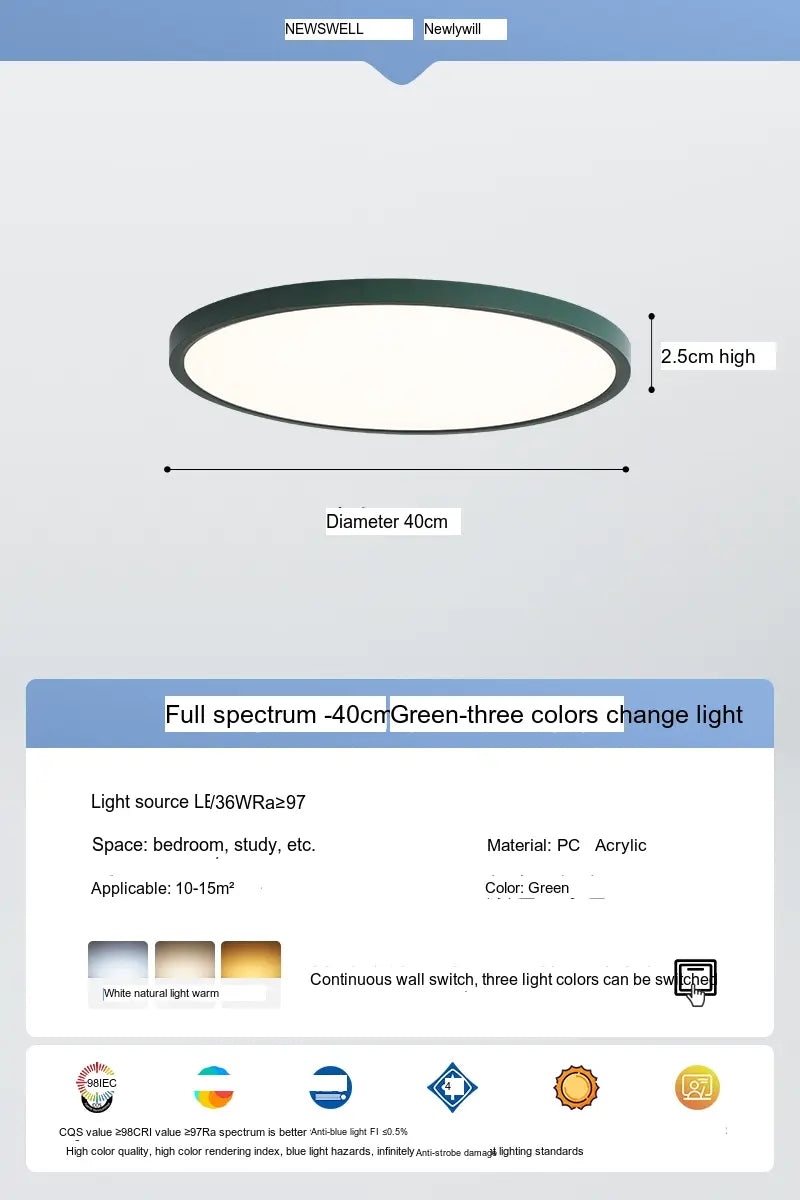 Enhance your living environment with the NEWVILLE Aurelia Sleek Eye-Care Ceiling Light—a luxurious yet practical lighting solution that combines health-conscious technology with stunning design.