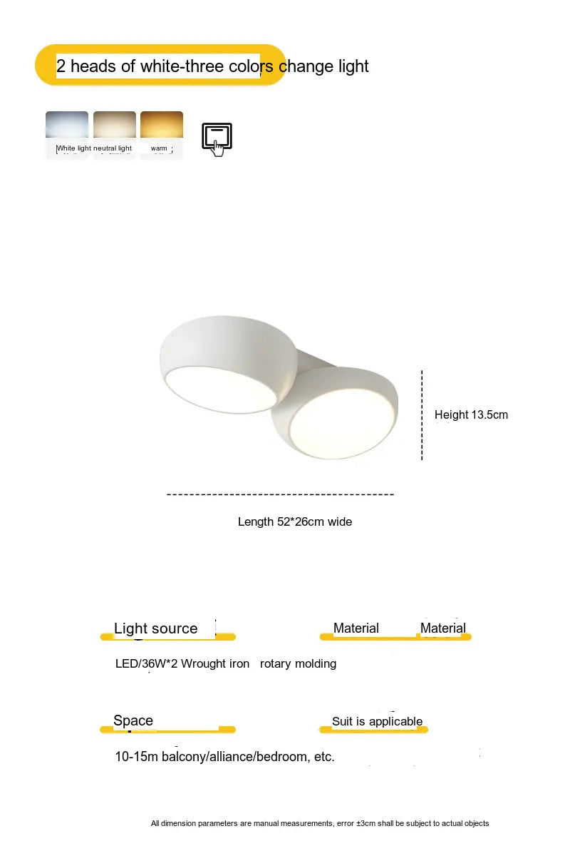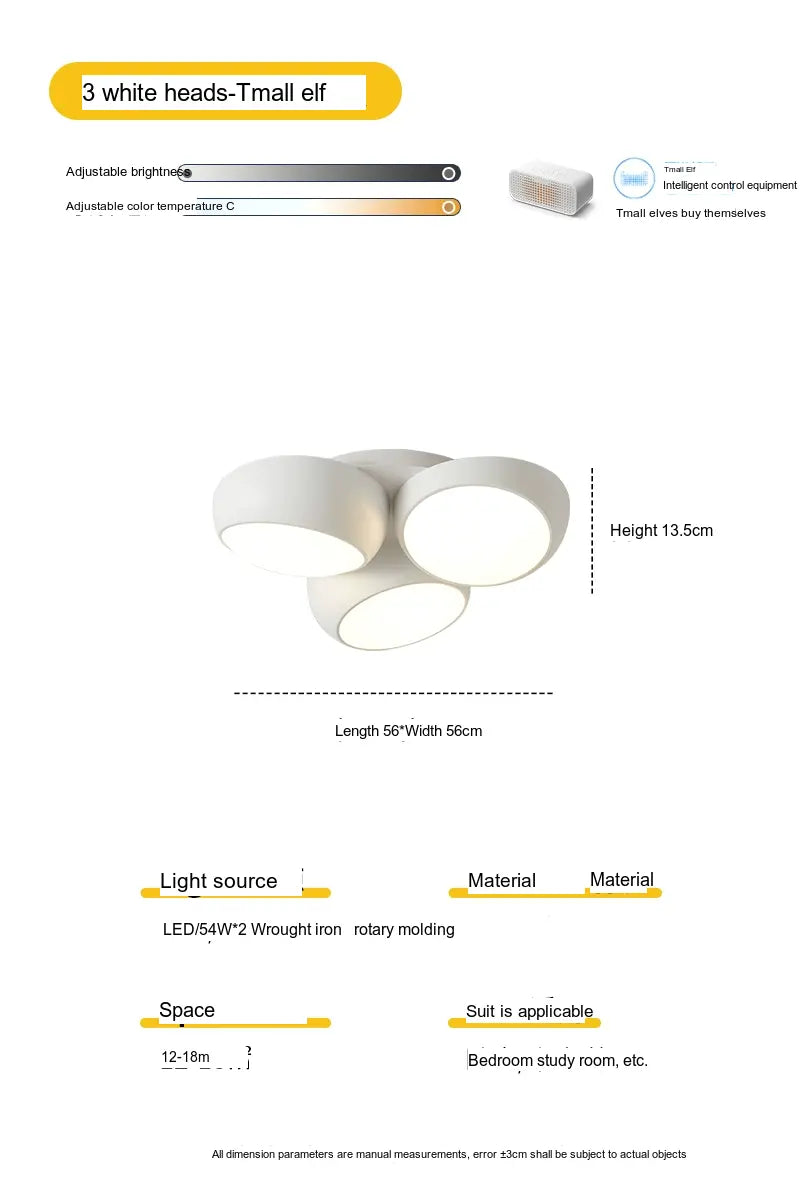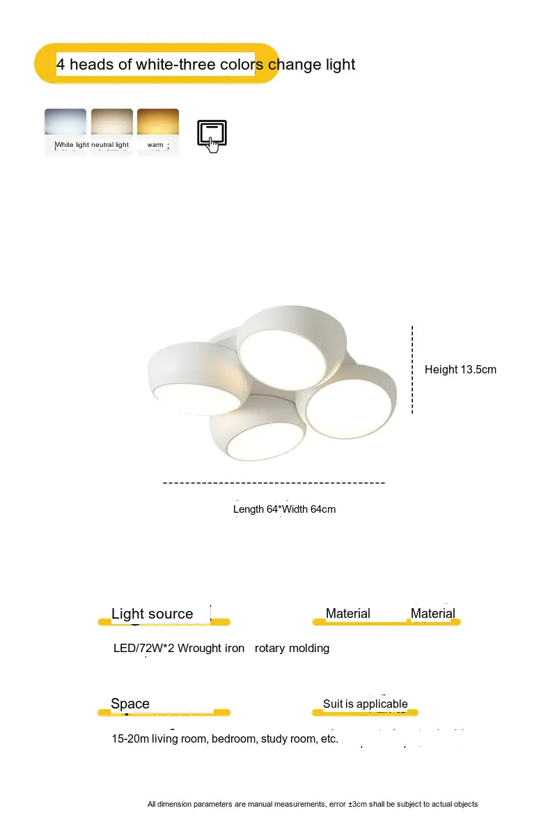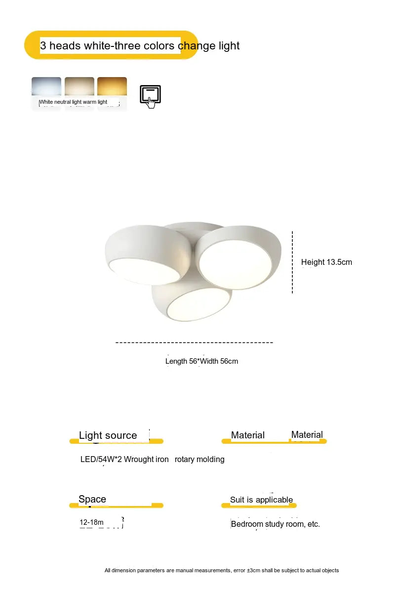 - Diameter 56CM: Three-head variant with three-color light change, ideal for larger spaces.