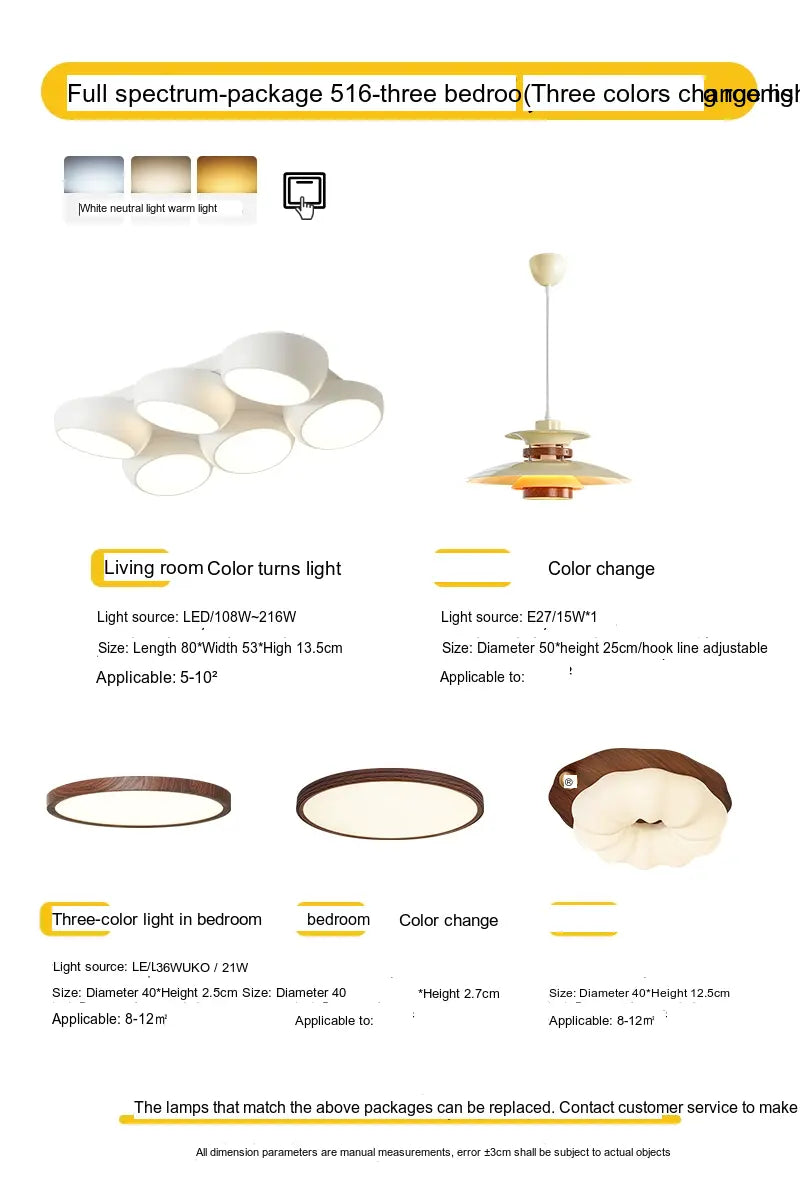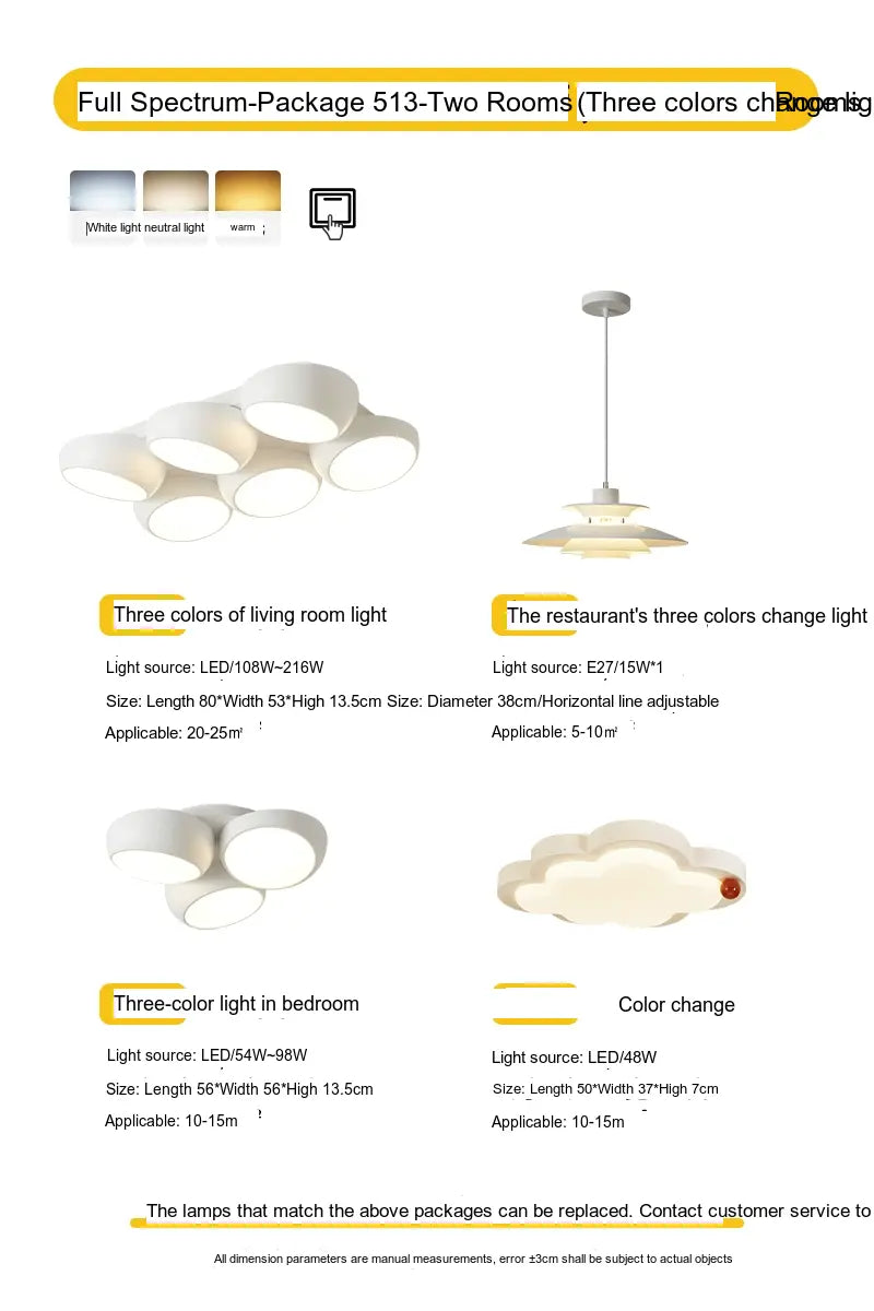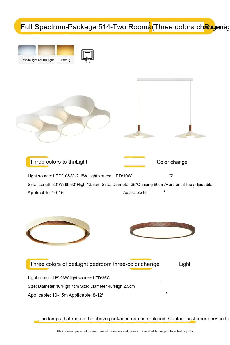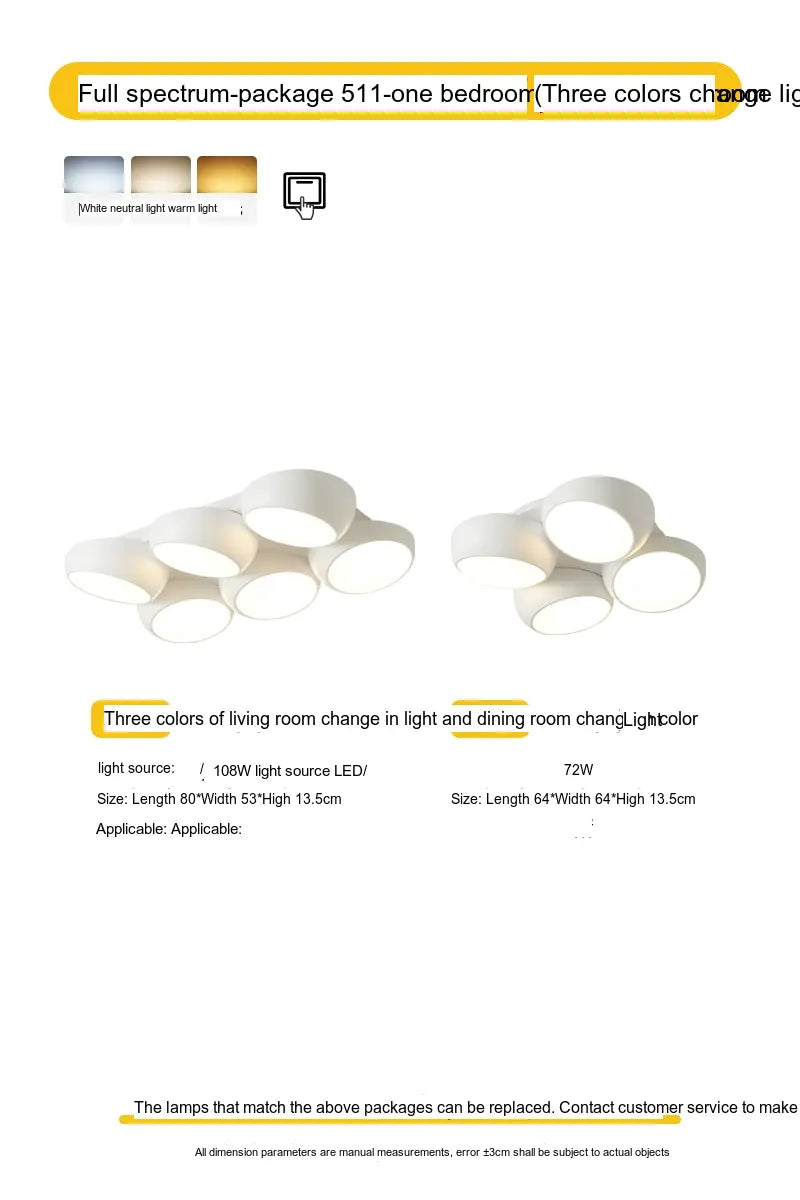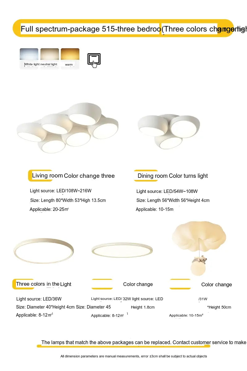 - Diameter 56CM: Three-head variant with three-color light change, ideal for larger spaces.