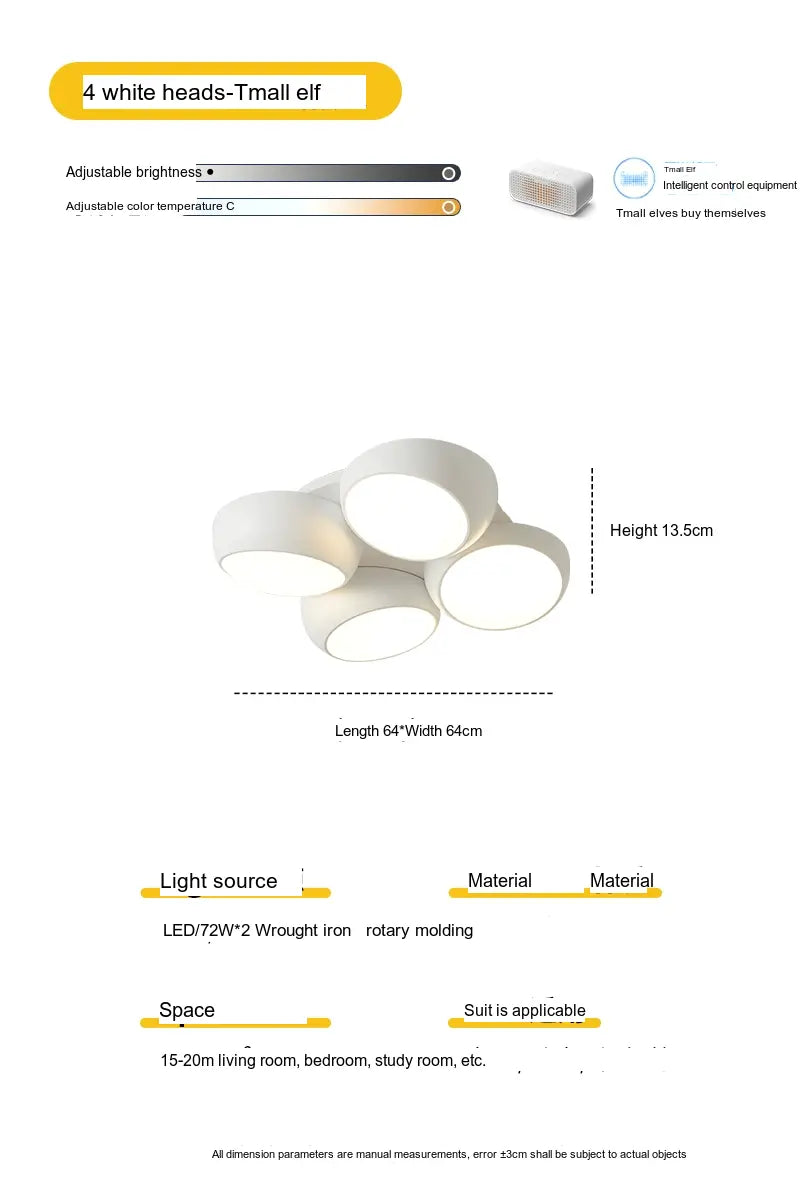 - Diameter 52CM: Two-head and Three-color transmittance, perfect for small to medium rooms.