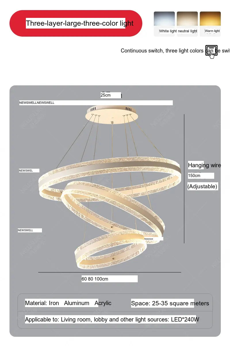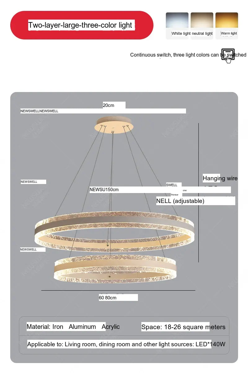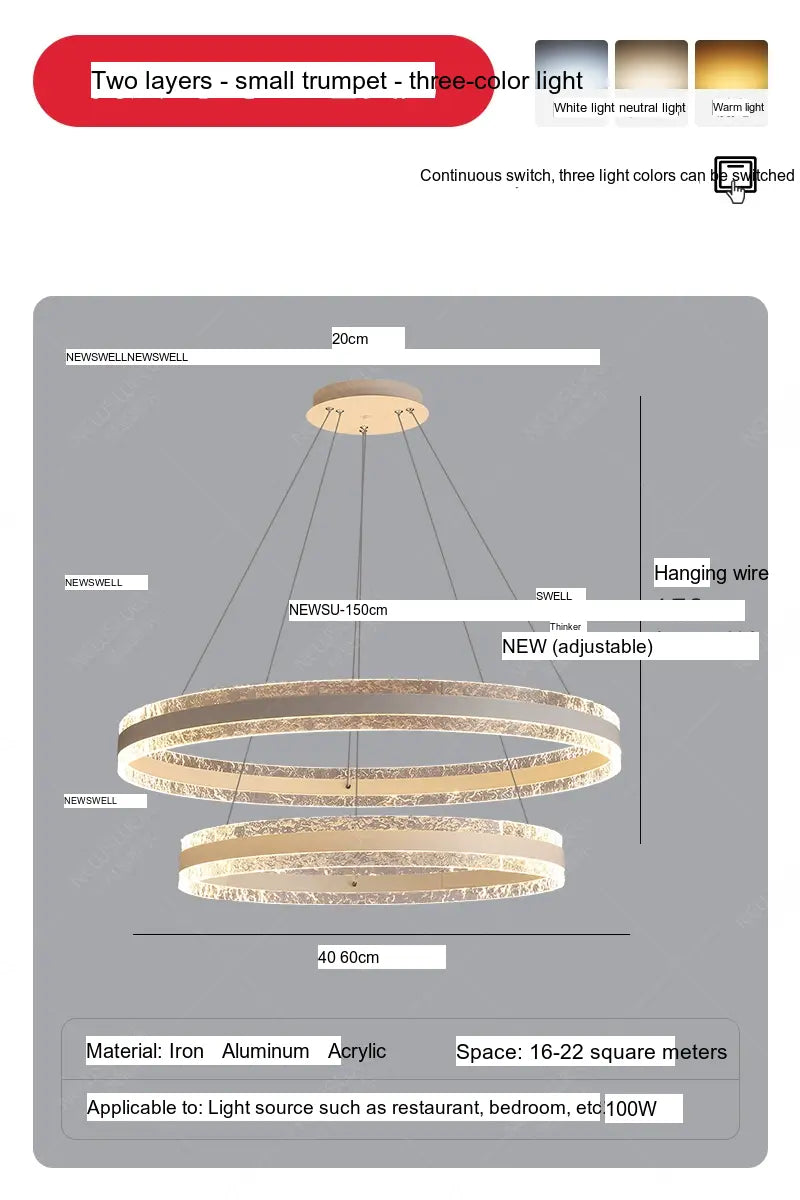The Kairi series offers multiple options tailored to fit a wide range of spaces. Whether you're looking at a two-circle layout of 40cm-60cm or a grand three-circle configuration of 60cm-80cm, you can select what best suits your decor. The adjustable hanging wire allows for customization in height, ensuring that you can achieve the desired look and functionality in any room.