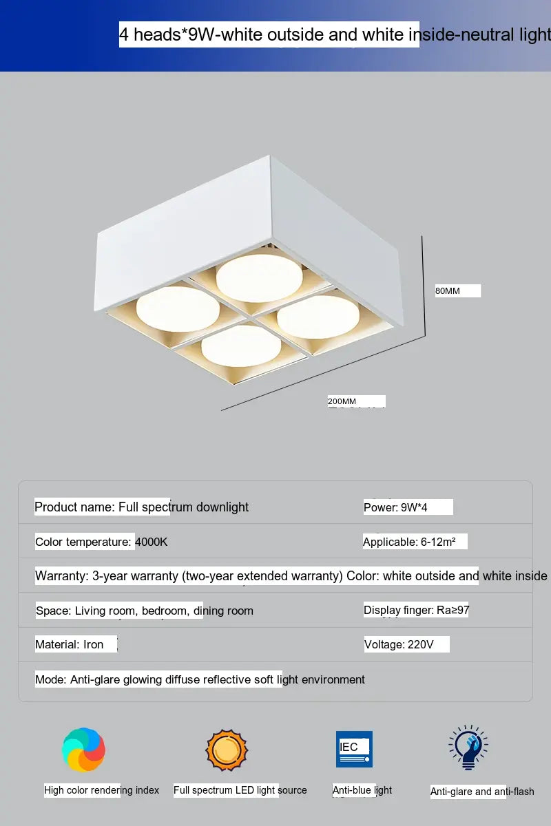 Designed with a modern twist, the square shape and sleek lines of the NEWVILLE Marcellus light add sophistication to any room. The minimalist aesthetic is perfect for contemporary décor while offering versatility to blend with more traditional styles. Available in multiple color finishes, including advanced full spectrum options and an elegant black and white interior, this ceiling light is both functional and visually inspiring.