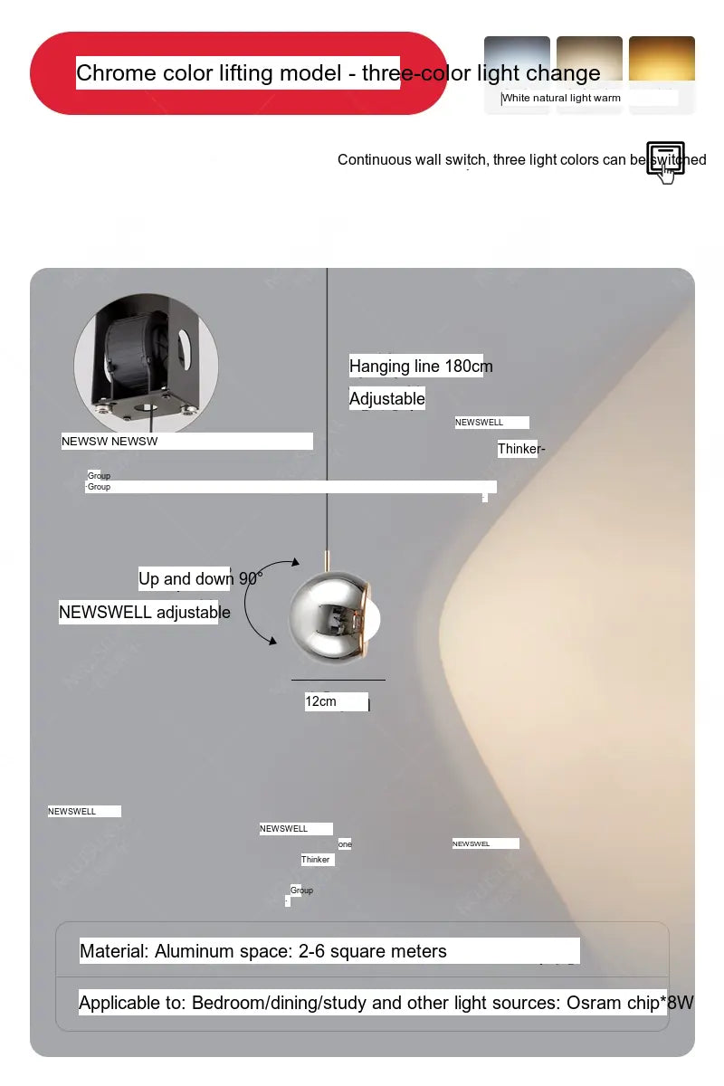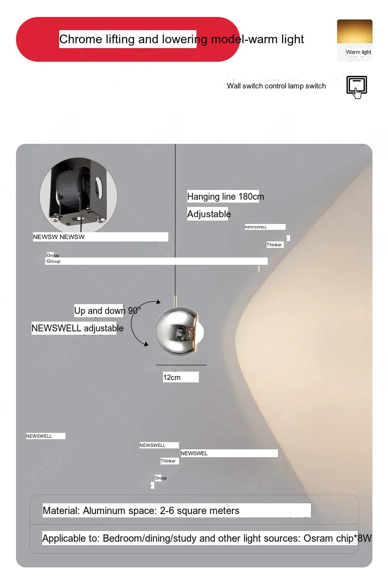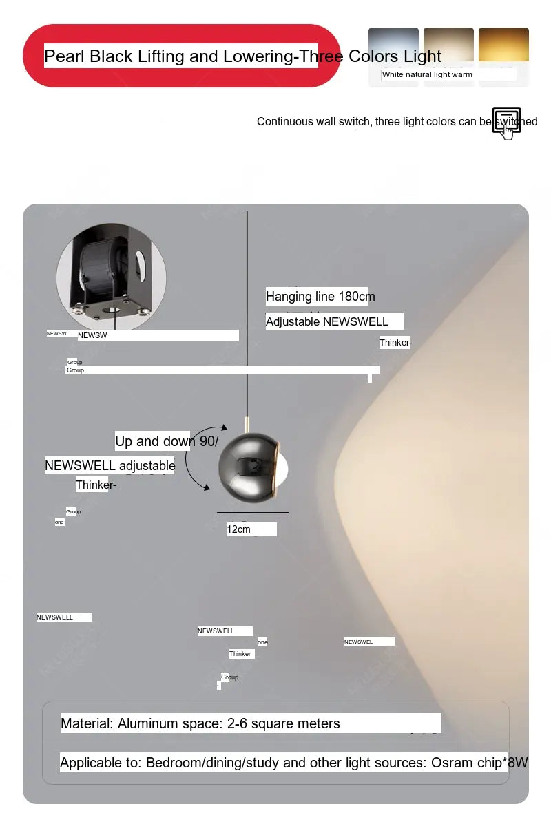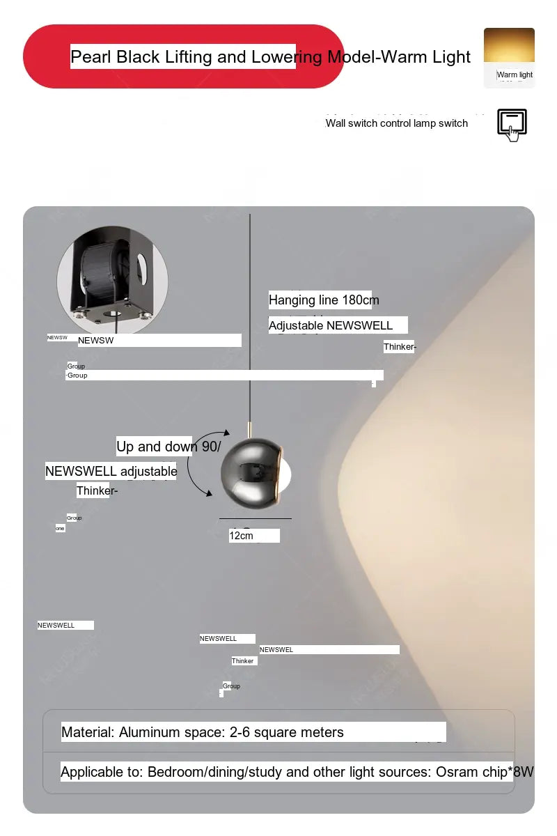 This modern pendant lamp features a built-in spring-assisted retractable system. You can easily raise or lower the lamp to match your preferred lighting height—no tools or complicated installation required.
