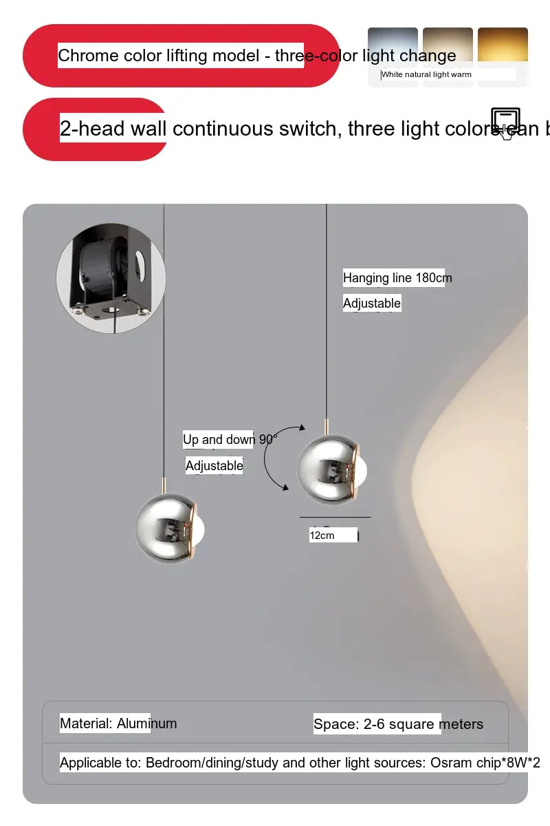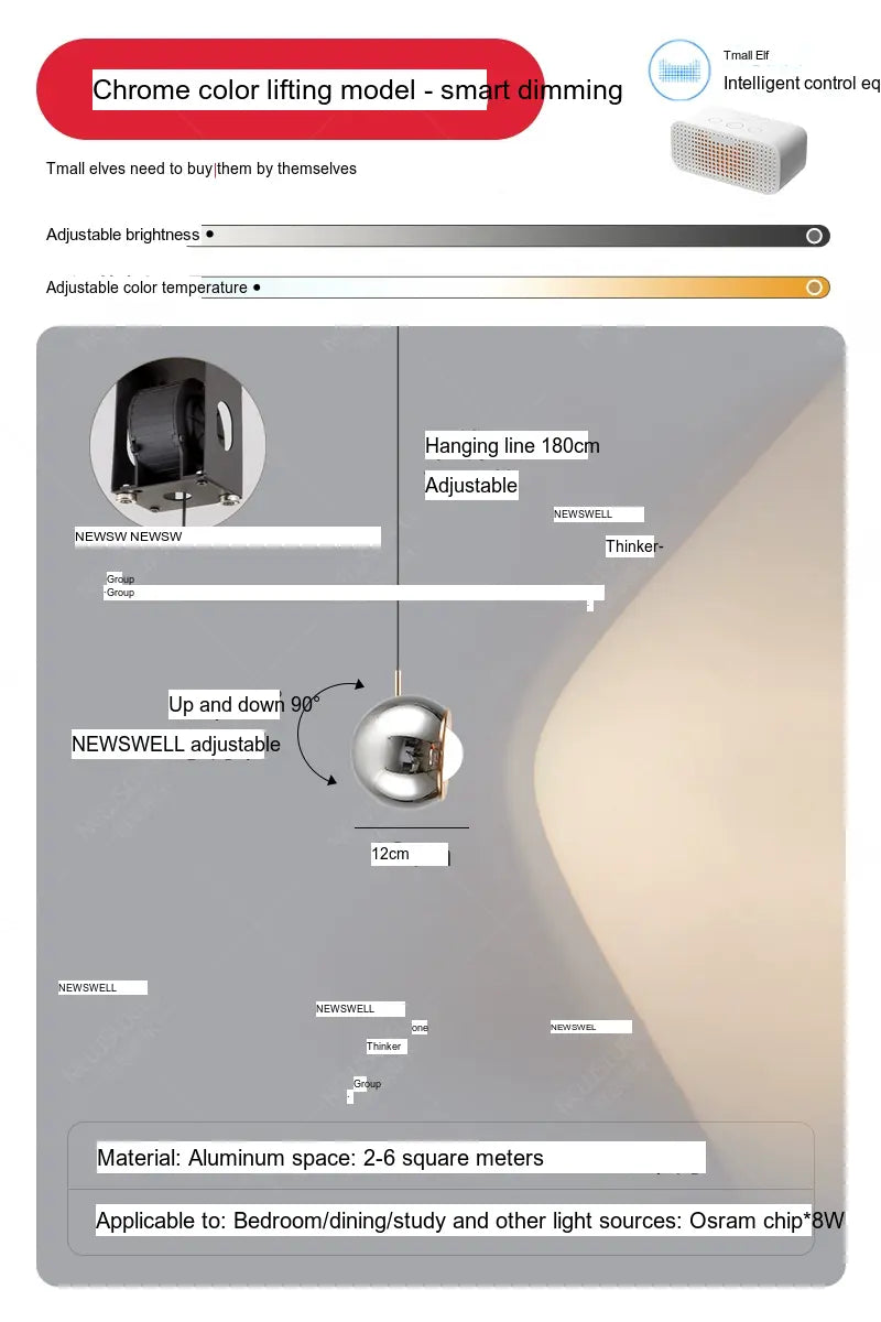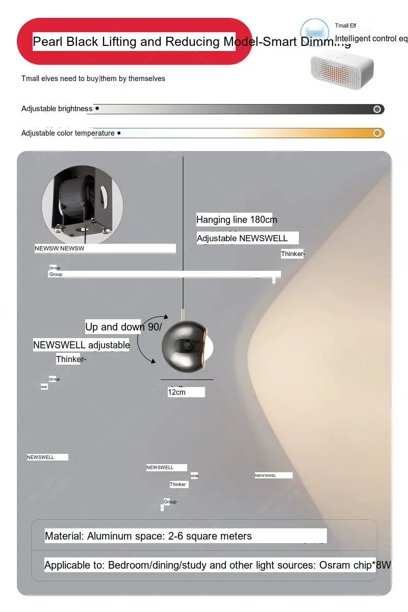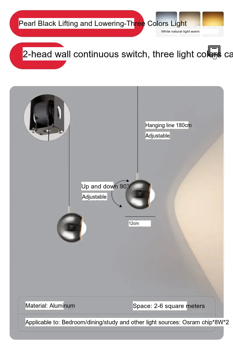 This modern pendant lamp features a built-in spring-assisted retractable system. You can easily raise or lower the lamp to match your preferred lighting height—no tools or complicated installation required.