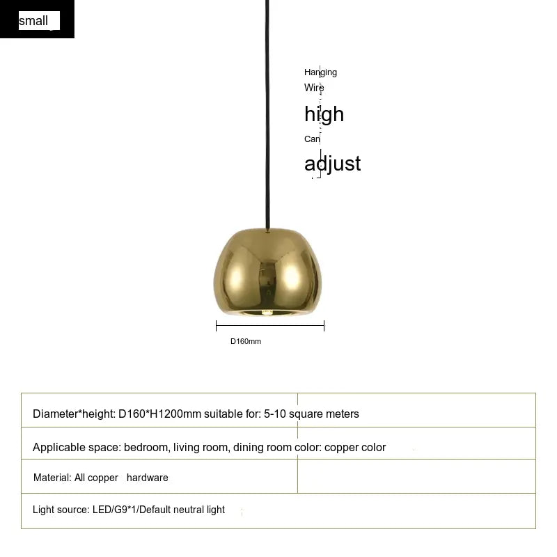 The lamp’s design echoes the principles of minimalism, showcasing clean lines and an elegant form. The refined copper finish enhances its aesthetic appeal, creating a timeless look that can complement both modern and traditional interiors. The fishing line chandelier shape of the lamp adds a unique character to the design, drawing attention from every angle while providing an attractive highlight to your space.