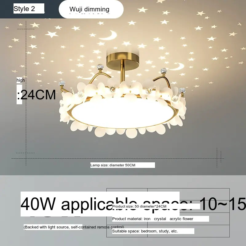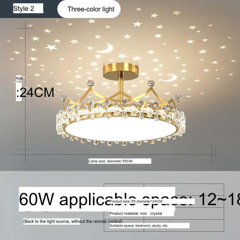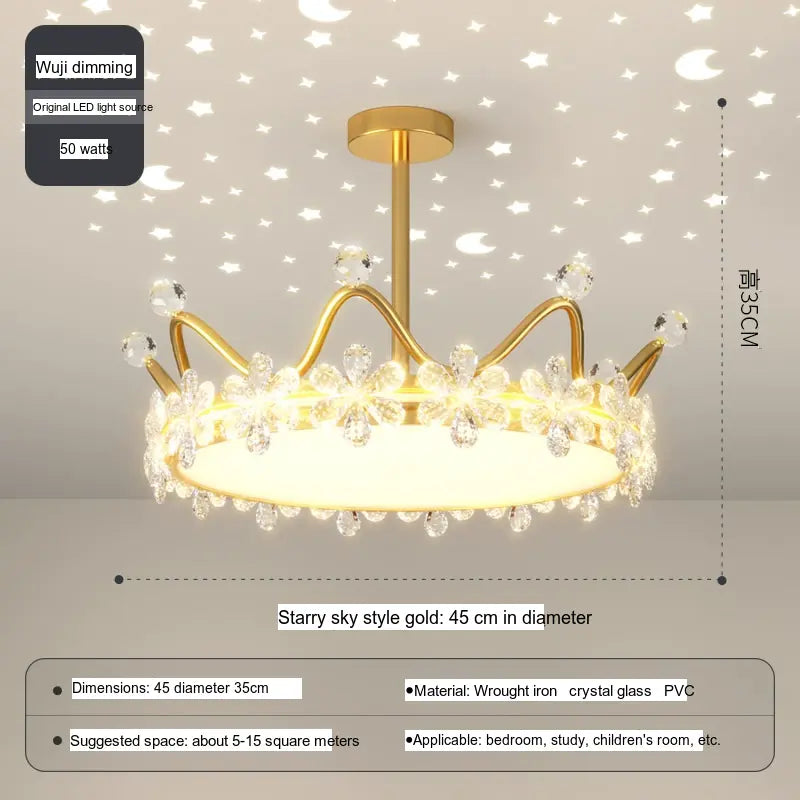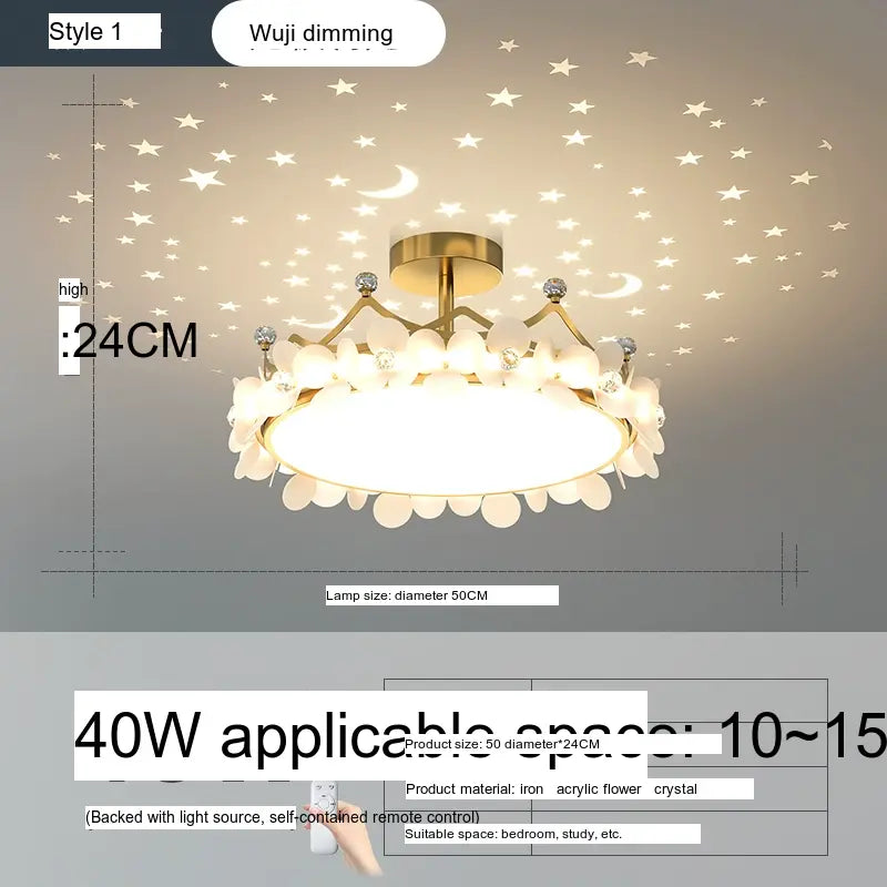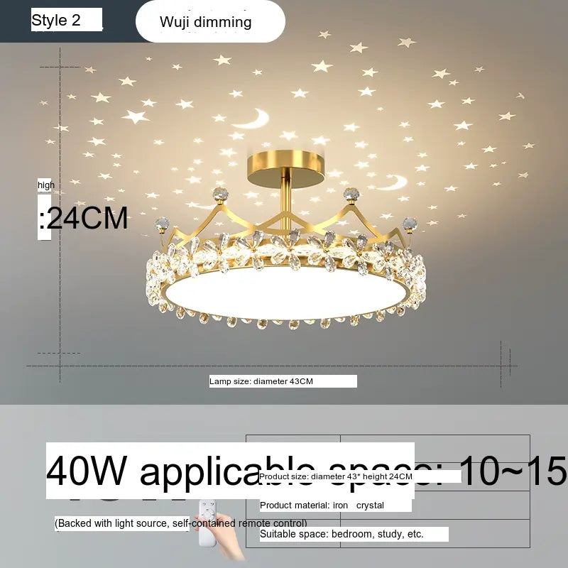 The Elowen ceiling lamp features a simple yet captivating design that embodies modernity and sophistication. Its crystal starry effect creates a magical ambiance reminiscent of a shimmering night sky, adding an enchanting atmosphere to your room. With multiple color options available—including Gold and Pink starry sky models—you can easily find the perfect match for your personal style and existing décor.