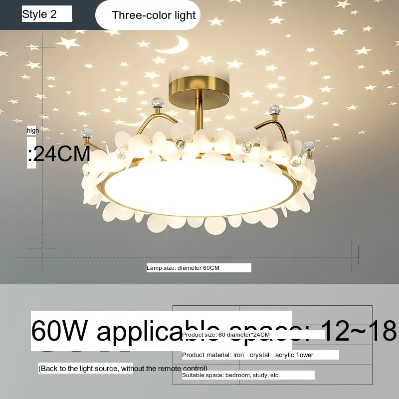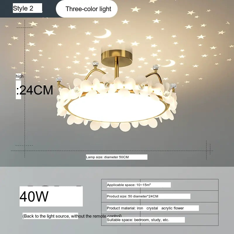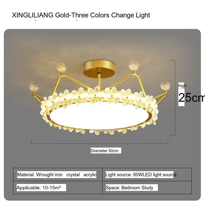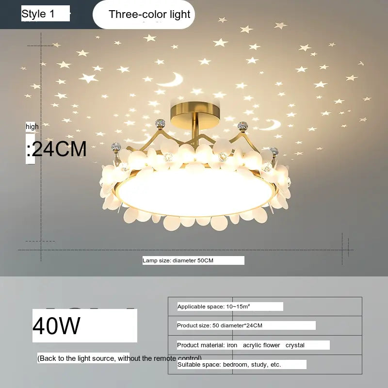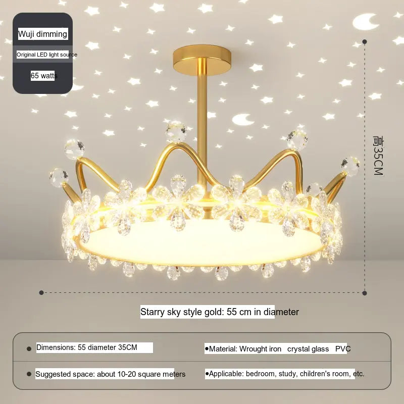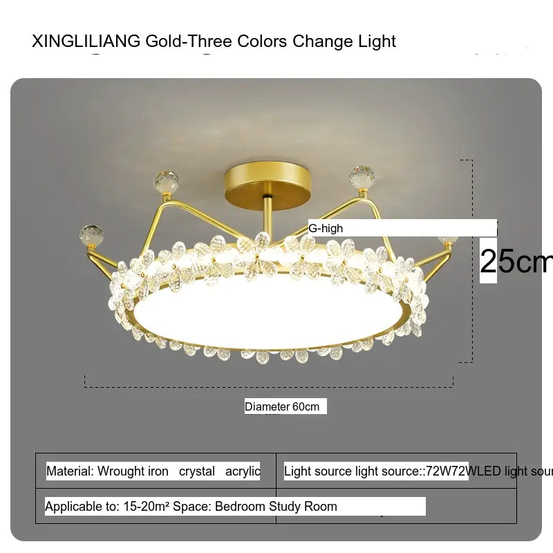 The Elowen ceiling lamp features a simple yet captivating design that embodies modernity and sophistication. Its crystal starry effect creates a magical ambiance reminiscent of a shimmering night sky, adding an enchanting atmosphere to your room. With multiple color options available—including Gold and Pink starry sky models—you can easily find the perfect match for your personal style and existing décor.