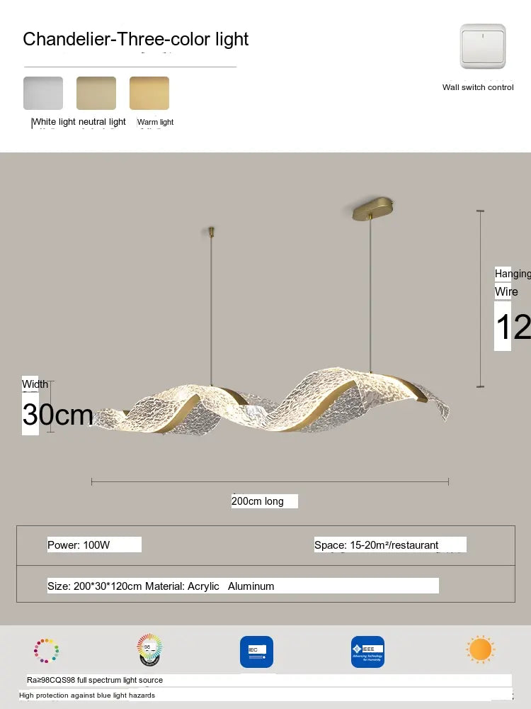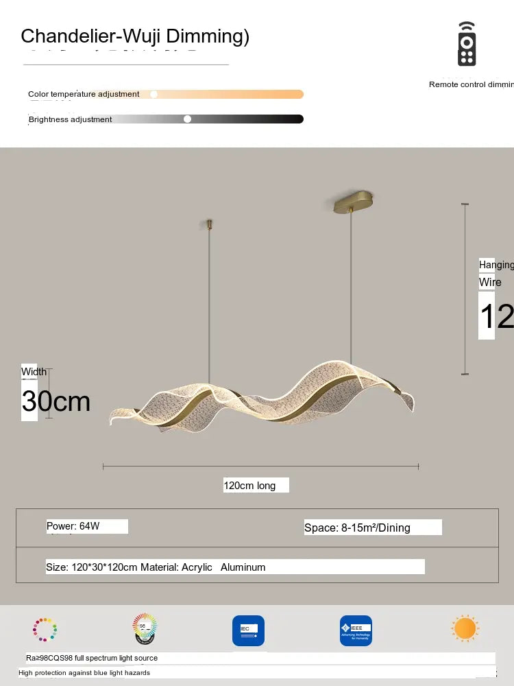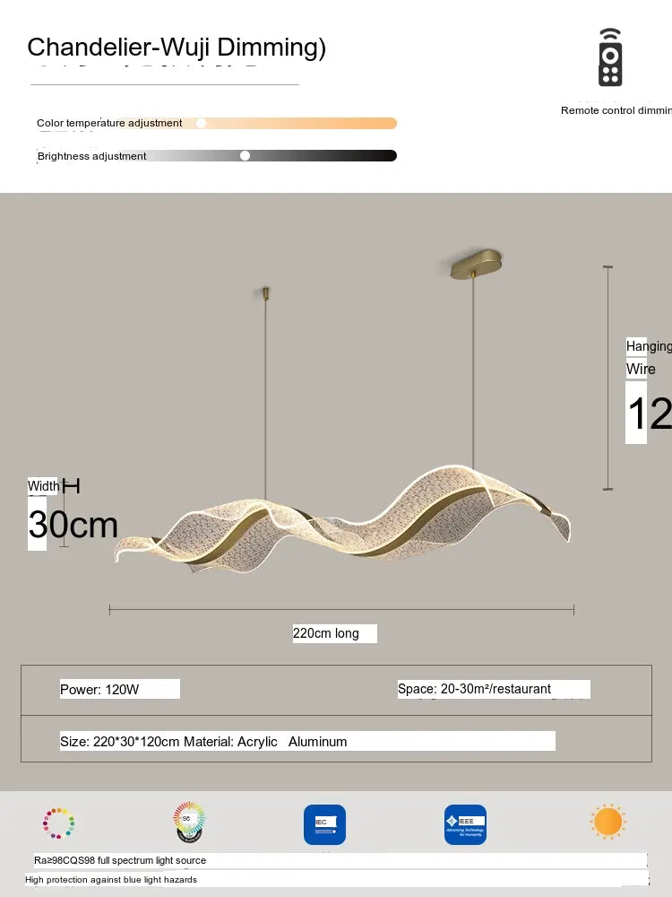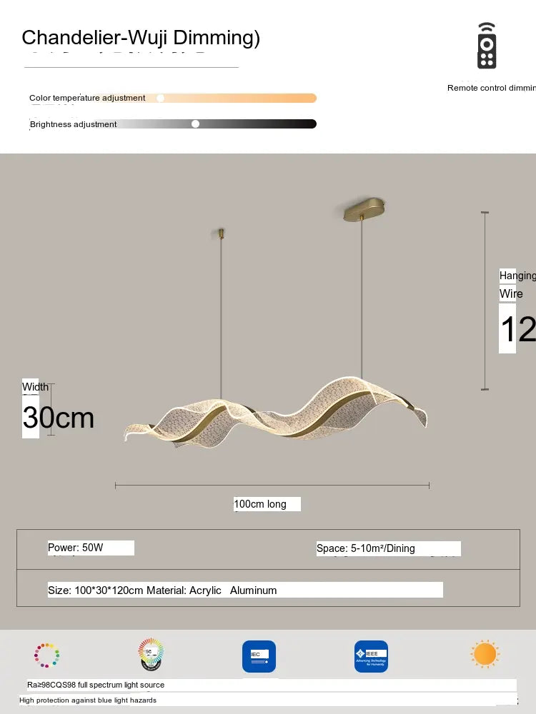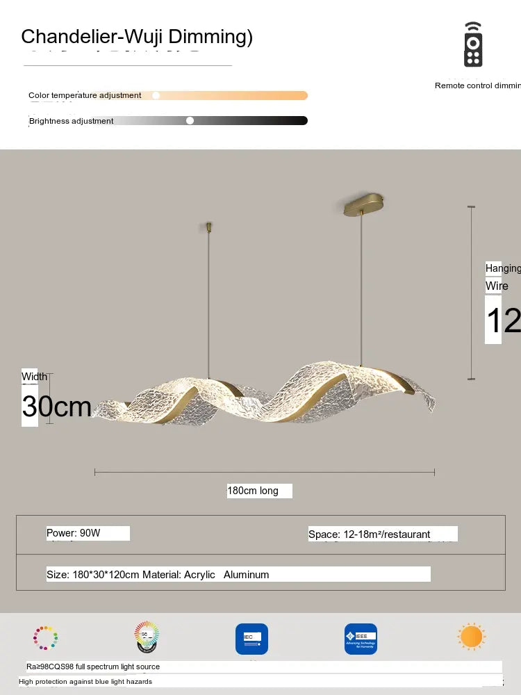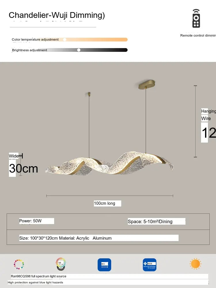 The Haruki Ceiling Lamp is not just a source of light; it's an artistic statement that bridges the gap between functionality and aesthetic appeal. Available in a range of delightful designs, including the alluring Gold Ribbon Water Ripple and the captivating Gold Ribbon Starry Sky, you can select from various sizes ranging from 100CM to 220CM to best suit your interior layout. Whether you are aiming for a minimalistic aesthetic or a vibrant ambiance, this lamp adapts seamlessly to your taste.