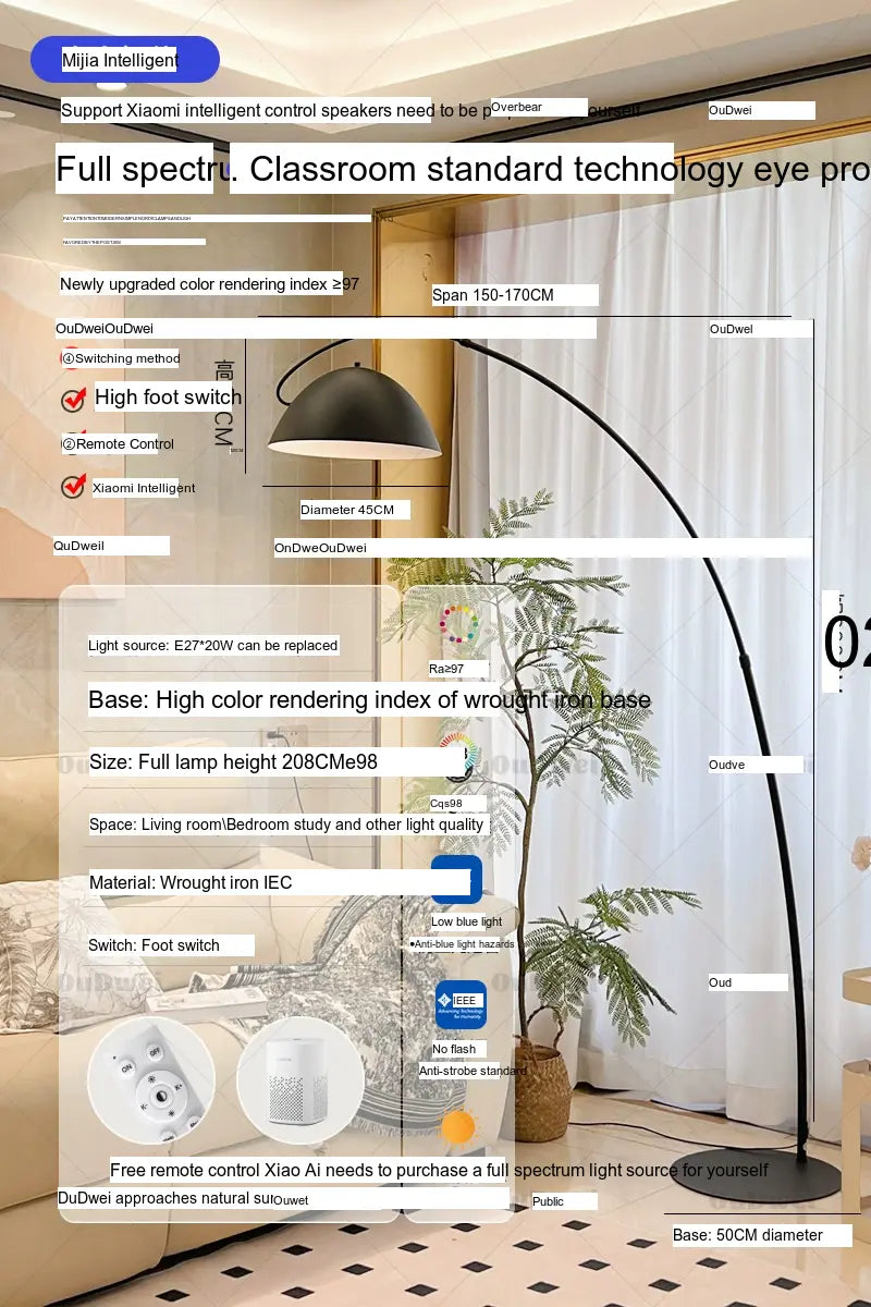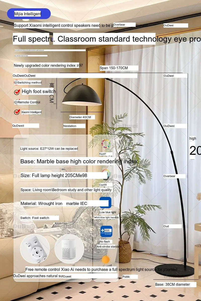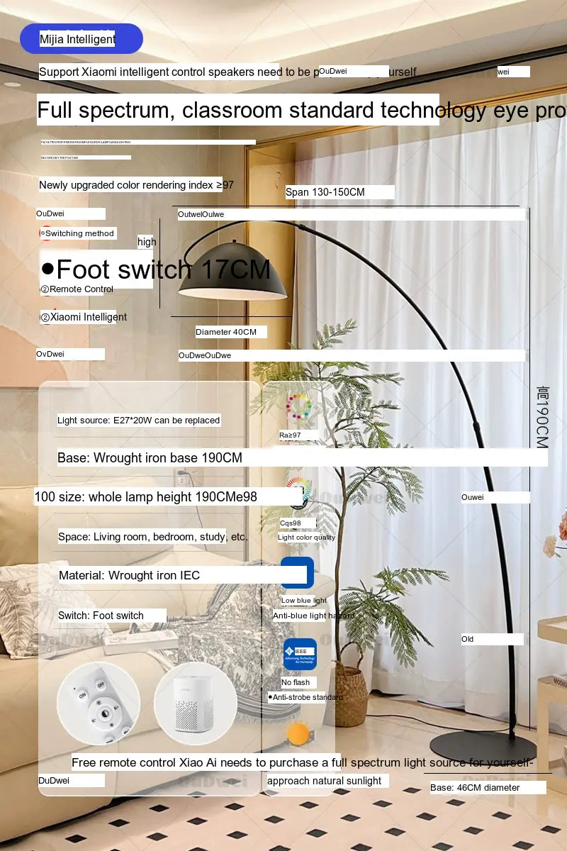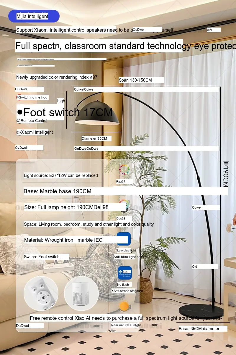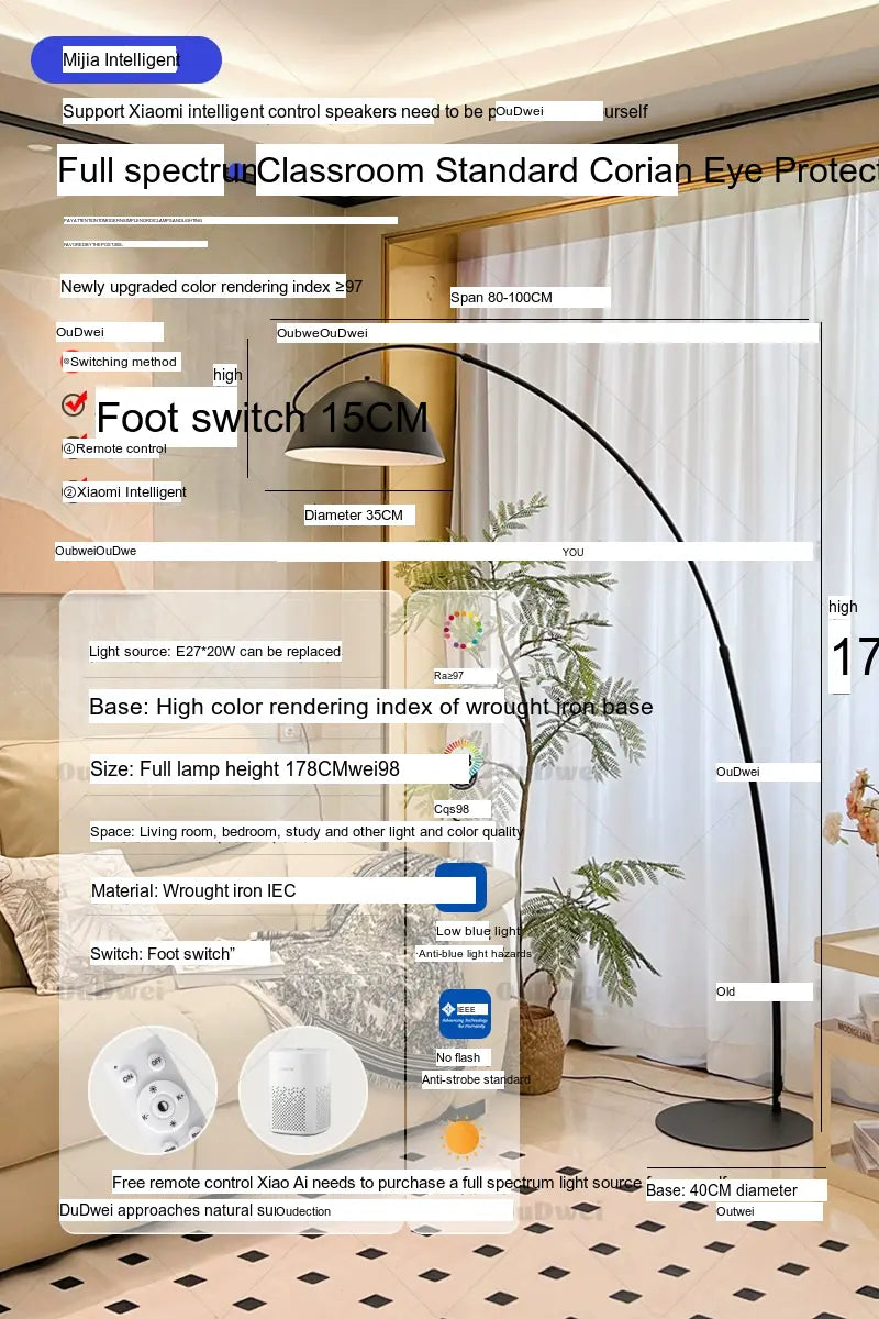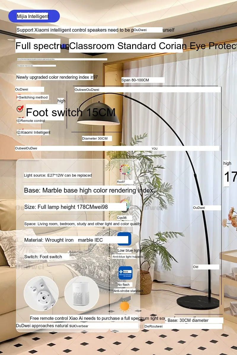 This floor lamp is equipped with a 6W to 10W LED light source, providing a warm, ambient glow that enhances the atmosphere of any room. With an illumination area of 3㎡ to 5㎡, it is ideal for cozy setups like reading corners or conversational sitting areas. The lamp features different lighting options, including a 12-watt warm light, three-color light source, and variants compatible with modern voice control systems like Tmall Voice Control and Xiao Ai. This functionality allows you to adjust the lighting to match your mood or occasion seamlessly.