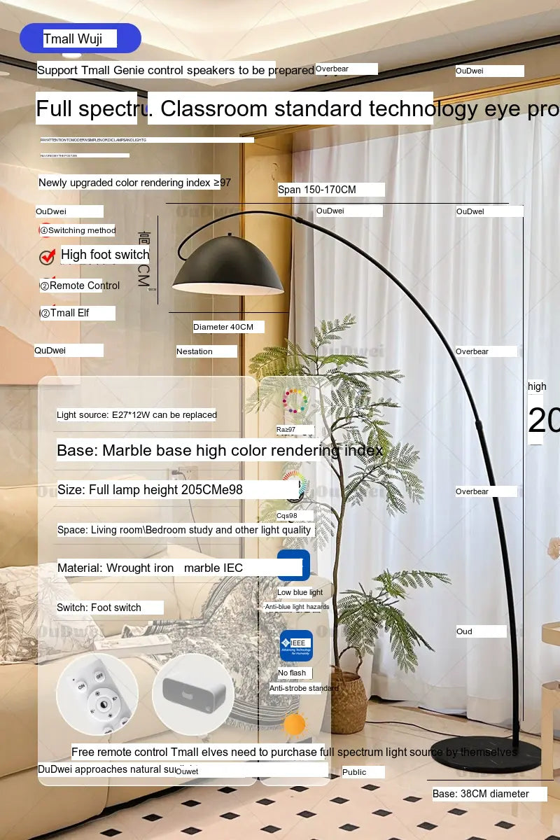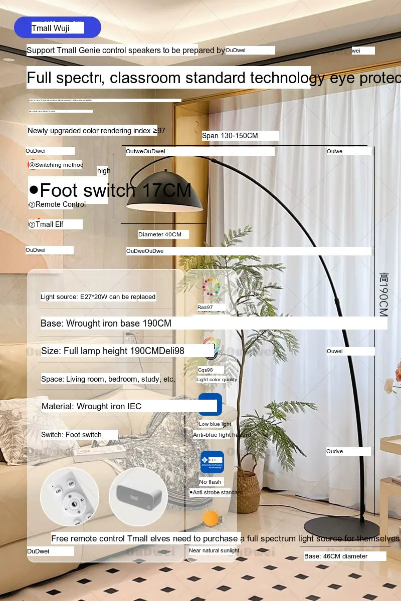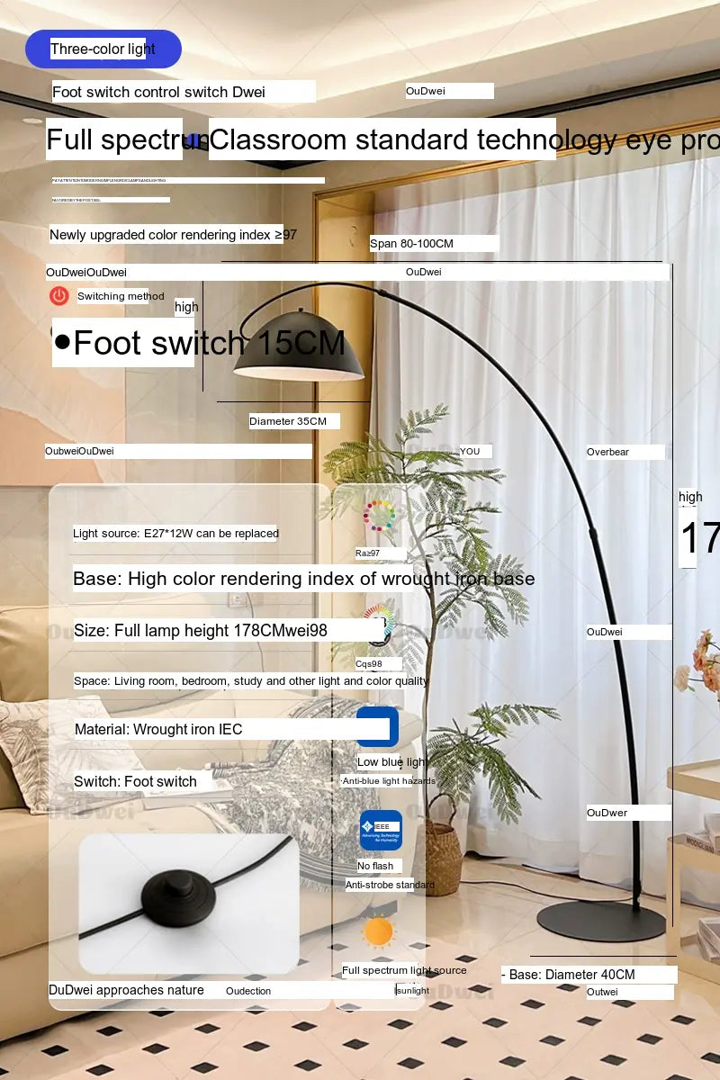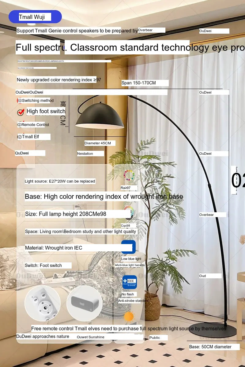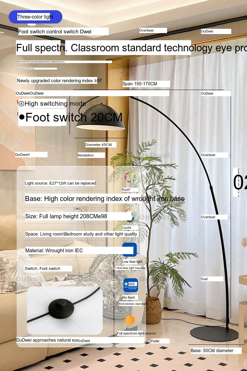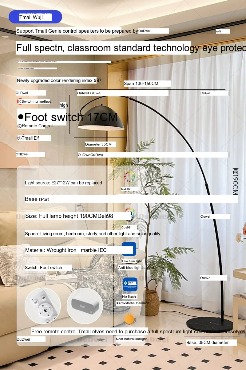 This floor lamp is equipped with a 6W to 10W LED light source, providing a warm, ambient glow that enhances the atmosphere of any room. With an illumination area of 3㎡ to 5㎡, it is ideal for cozy setups like reading corners or conversational sitting areas. The lamp features different lighting options, including a 12-watt warm light, three-color light source, and variants compatible with modern voice control systems like Tmall Voice Control and Xiao Ai. This functionality allows you to adjust the lighting to match your mood or occasion seamlessly.