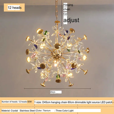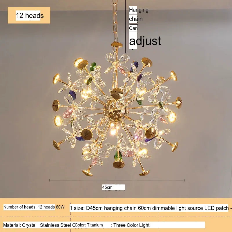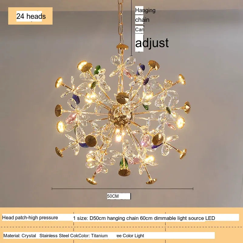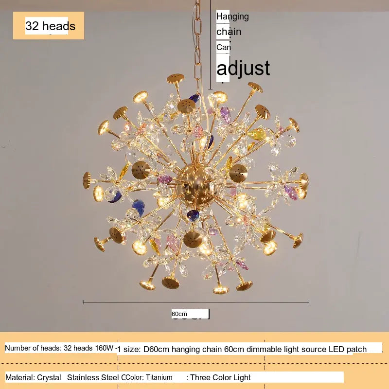 Available in three different spherical diameters—45CM, 50CM, and 60CM—this lamp caters to various spatial requirements, allowing you to select the perfect size for your setting. Each variant is fitted with a default warm light LED source, creating a cozy and inviting atmosphere. The warm glow not only enhances the ambiance but also complements the shimmering crystal components that adorn the lamp, enhancing its beauty while providing adequate illumination.