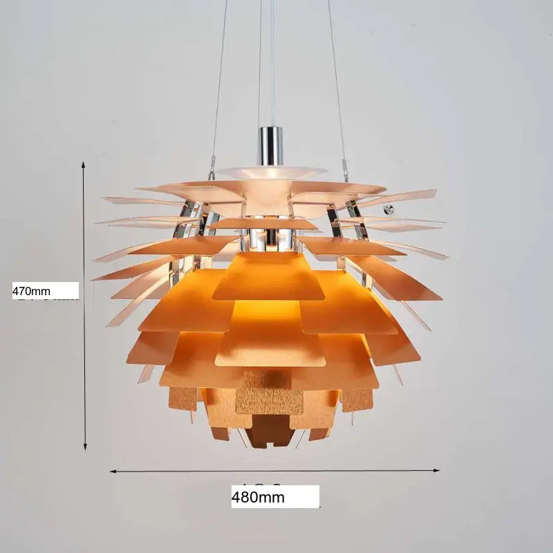 Crafted from high-quality aluminum and copper finishes, the Elowen ceiling lamp guarantees durability while ensuring a visually appealing finish. The lamp features a non-intelligent control system, allowing for easy operation without the need for complex technology. The lamp's design features layered, geometric panels that create a striking presence and a refined architectural aesthetic, making it a suitable choice for contemporary, postmodern, or artistic interior styles. With a distinctive silhouette and expertly crafted structure, it transforms your ceiling into a captivating focal point.