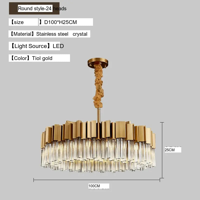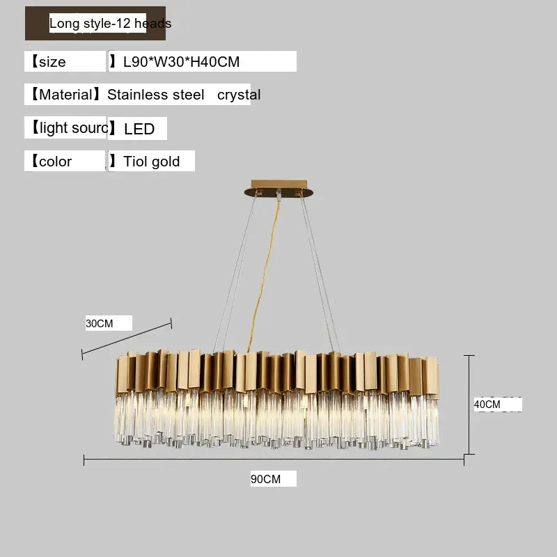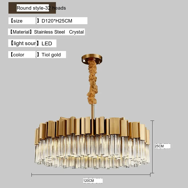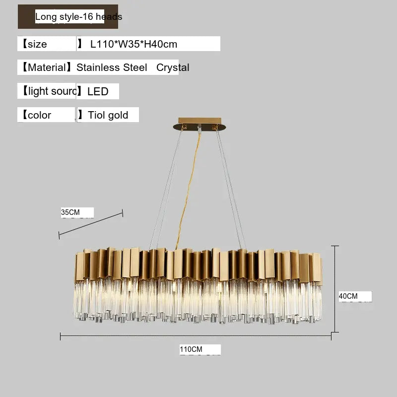 The Jorvik pendant lamp showcases a postmodern aesthetic, incorporating luxurious crystal accents that refract light beautifully, creating an enchanting atmosphere. Available in multiple configurations including round and long designs, you can choose the perfect size to match your space. Options include a round chandelier with 12 heads and dimensions D100*H25cm, a larger round variant with 32 heads at D120*H25cm, or a long-style chandelier with 12 heads measuring L90*W30*H40cm, and a larger version with 16 heads at L110*W35*H40cm. This variety allows you to customize your lighting experience to suit different room dimensions and design needs.