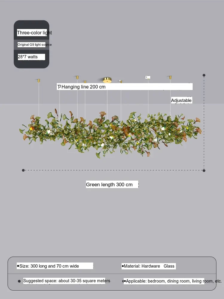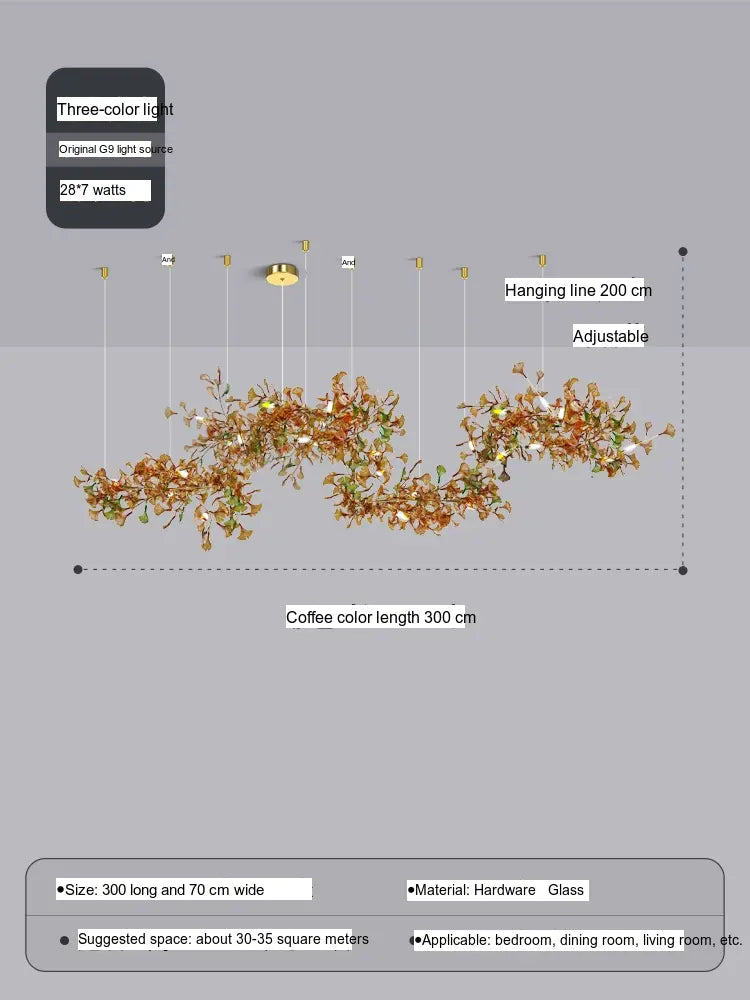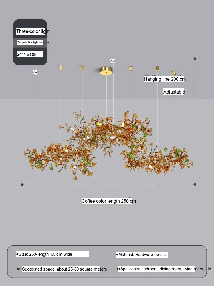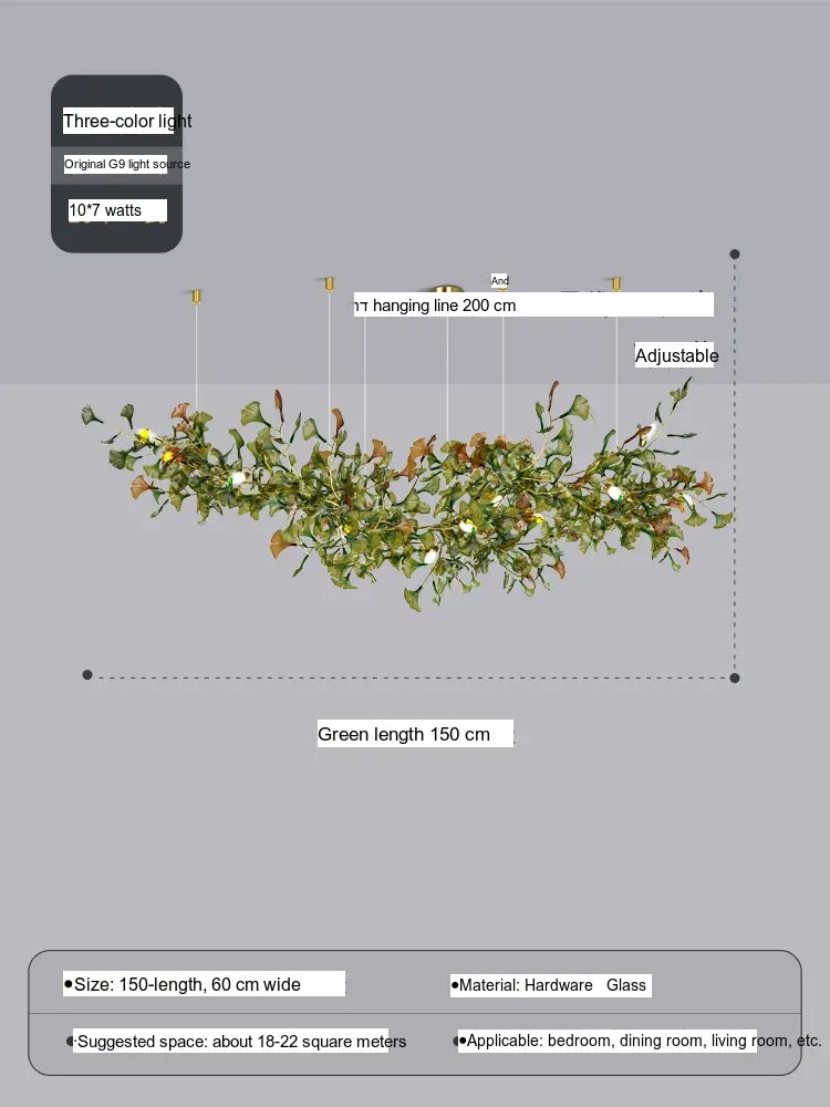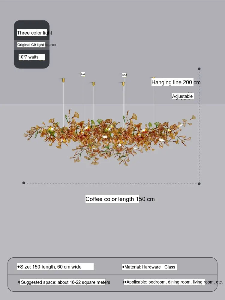 Featuring an integrated LED light source, the lamp is energy-efficient while providing ample illumination suitable for space sizes ranging from 10 to 30 square meters. The versatile light source enhances the ambiance, making it perfect for both practical and aesthetic needs. With its elegant fishline chandelier shape and five light heads, this lamp offers a stunning display of light that softens the atmosphere and creates a soothing environment.