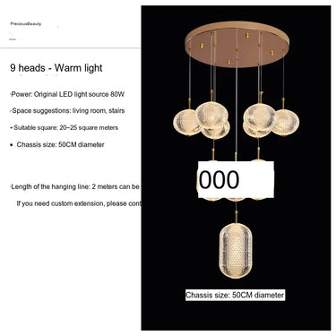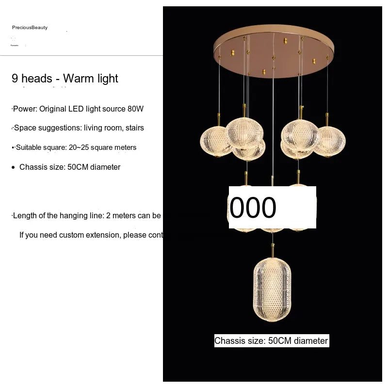 Manufactured by the renowned brand Kinlanda, the YDZM model (JLD0688) showcases a simple and modern aesthetic, perfectly aligning with contemporary interior trends. Available in multiple options, including the Golden 9-head (50CM), Golden 13-head (60CM), and Golden 16-head (80CM) versions, all emitting warm light, this lamp is designed to cater to diverse spaces while maintaining an air of luxury. The structure features a stylish fishing line chandelier design that emphasizes its unique appeal.