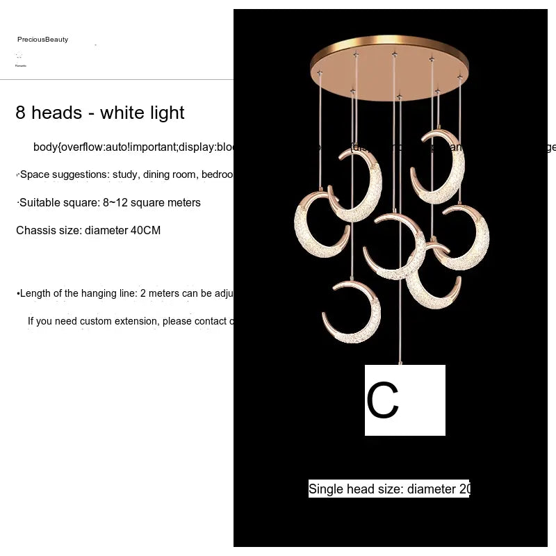 The YDZM Kaori Ceiling Lamp showcases a distinctive fish line chandelier shape that radiates sophistication. Available in multiple configurations—Gold Single Head, Gold 2 Head, Gold 5 Head, Gold 8 Head, and an expansive Gold 24 Head version—there's a perfect fit for diverse spaces and styles. Each model is meticulously crafted to enhance modern interiors. Furthermore, the lamp offers both warm and white light options, allowing you to tailor the ambiance for any occasion, be it a romantic dinner, a festive celebration, or a cozy evening in.