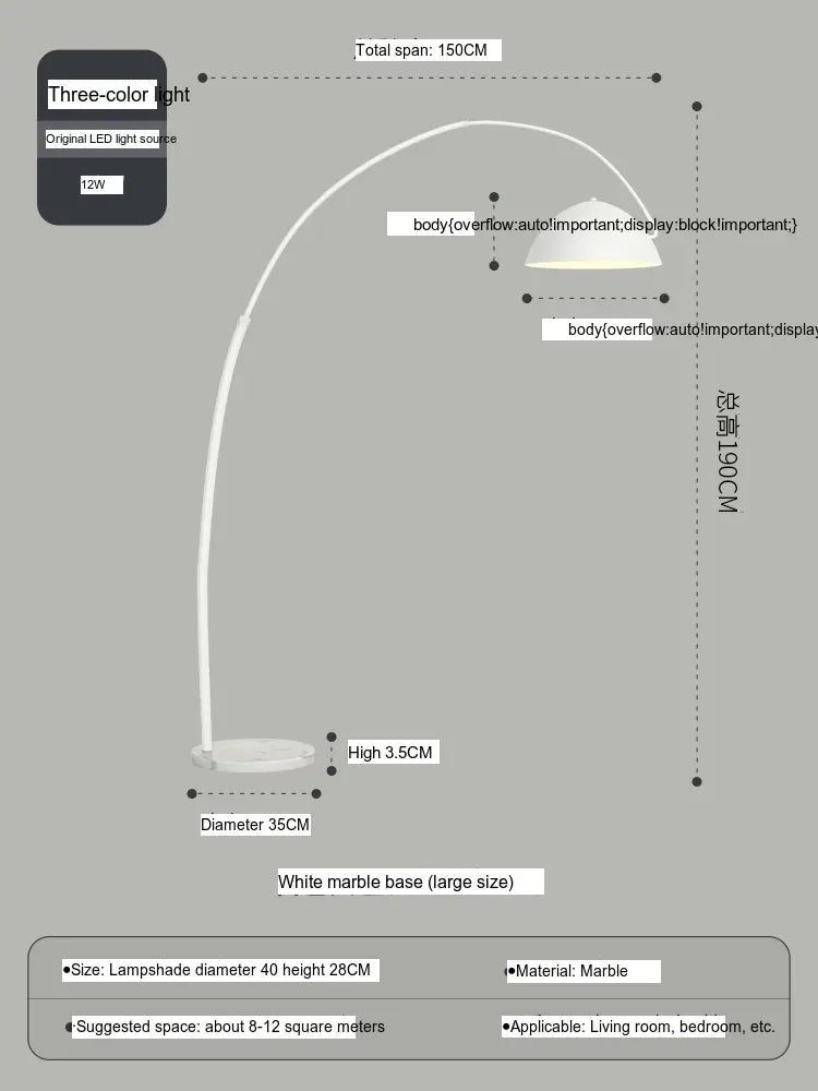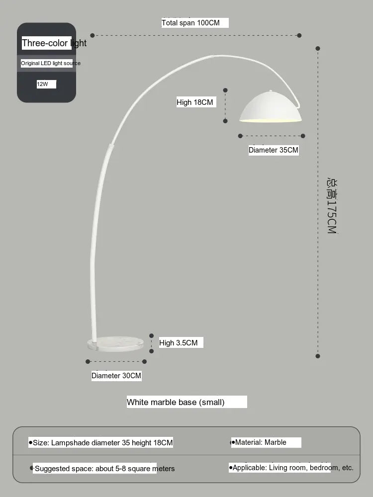 Beyond aesthetics, this floor lamp incorporates intelligent switch control for user convenience. The conveniently placed button-type switch allows for quick operation, enhancing its user-friendly appeal. Featuring a high transmittance PMMA lampshade, it effectively diffuses light, creating a warm and inviting atmosphere in any room. The lamp is designed to accommodate a voltage range from 111V to 240V, making it versatile enough for diverse setups. It excels at illuminating areas sized between 5㎡ to 10㎡, making it an ideal choice for living rooms, bedrooms, studies, and even stylish hotel lobbies.