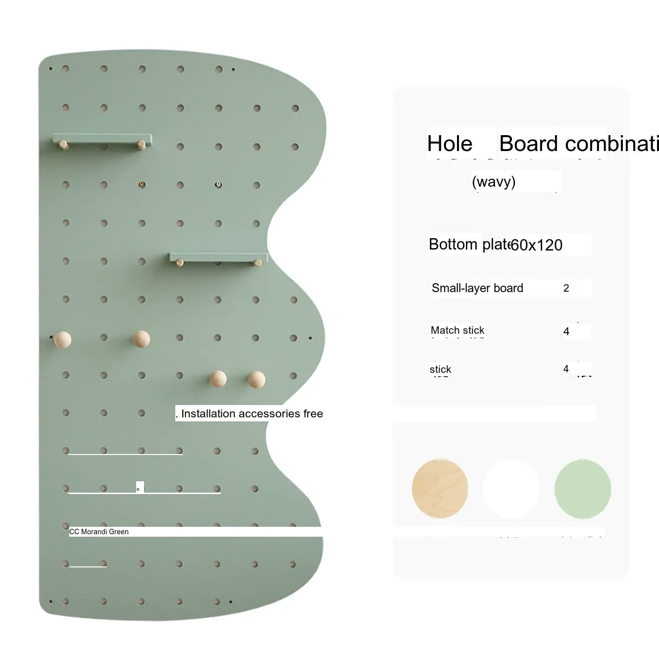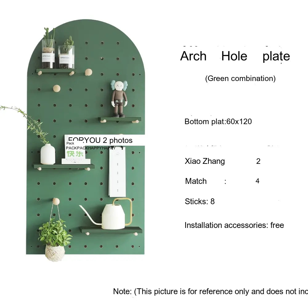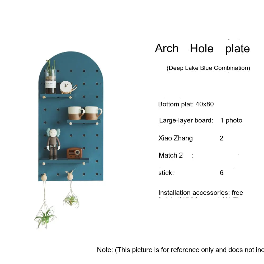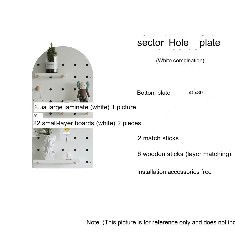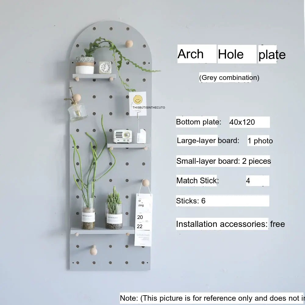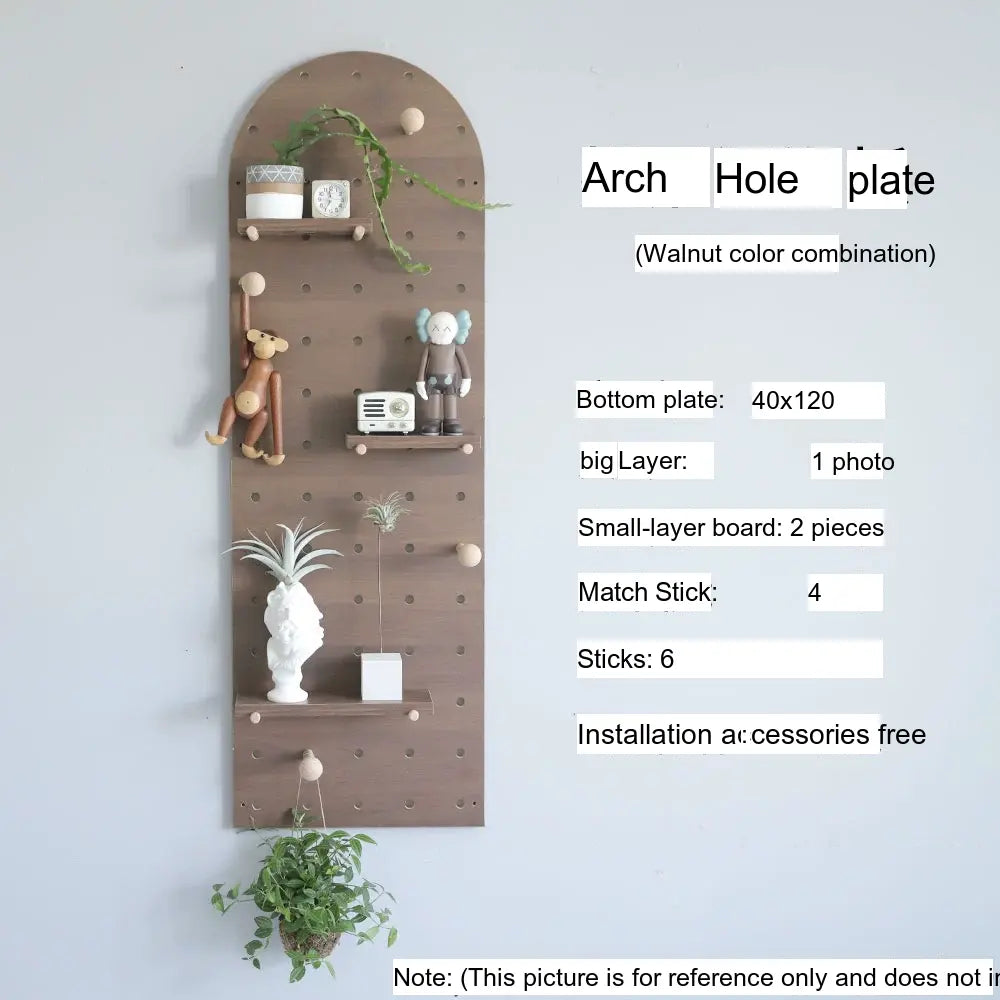 The pegboard structure offers flexible storage possibilities. Shelves, hooks, and accessories can be rearranged to store items such as bags, hats, keys, or decorative plants. With additional design elements like wave edges or layered panel shapes, it doubles as both storage and decor.