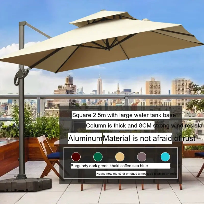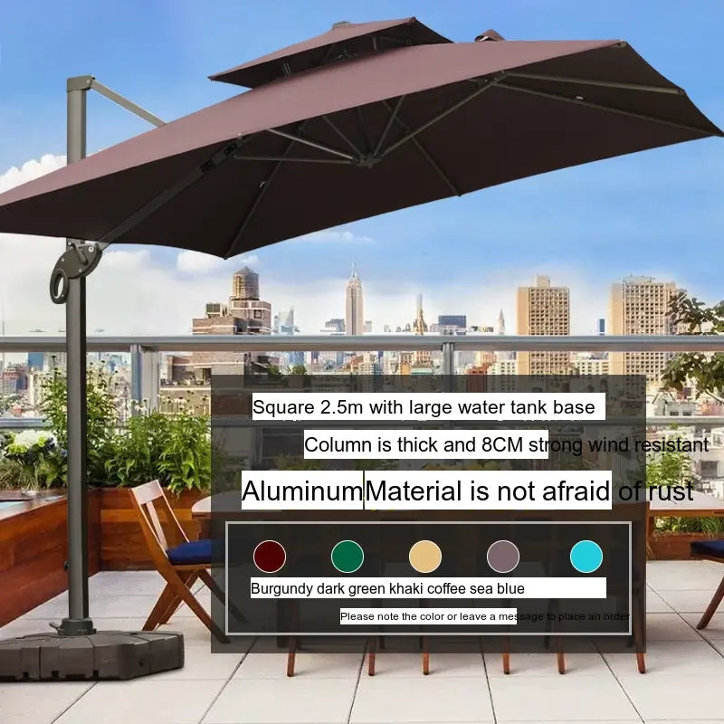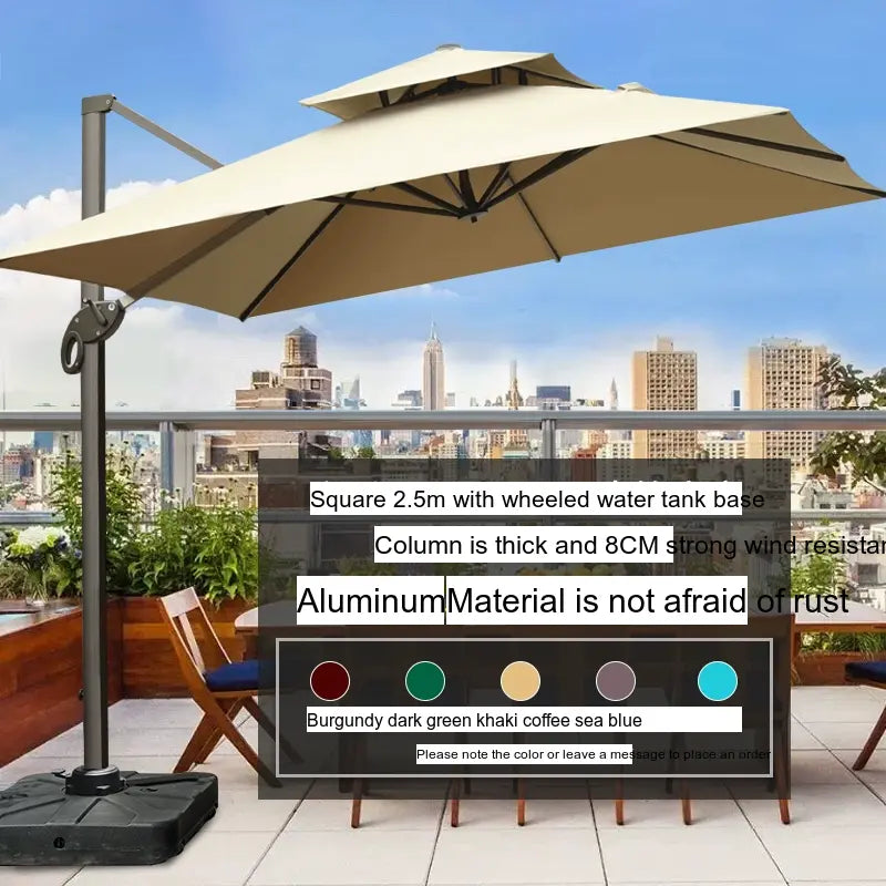 Manufactured in Foshan City, Guangdong Province, the Everestia umbrella is a testament to refined craftsmanship and durability. Its frame, constructed from high-grade anodized aluminum, ensures resistance to corrosion and guarantees long-lasting use. The robust aluminum frame is designed with a reinforced pole, providing exceptional strength and wind resistance, allowing you to enjoy peaceful moments outdoors without concern for unpredictable weather. Available in a range of sizes such as 2.5 meters square and 3.0 meters round, the umbrella is equipped with a wheeled water tank base to deliver added stability on breezy days.