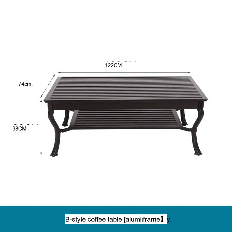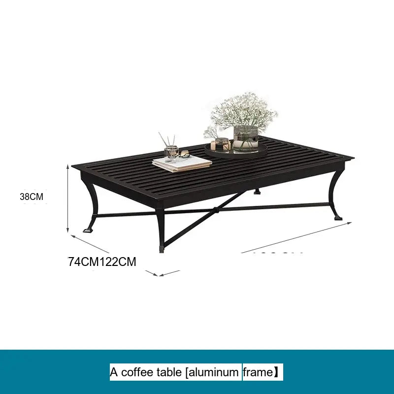 A rectangular coffee table with a sturdy aluminum frame