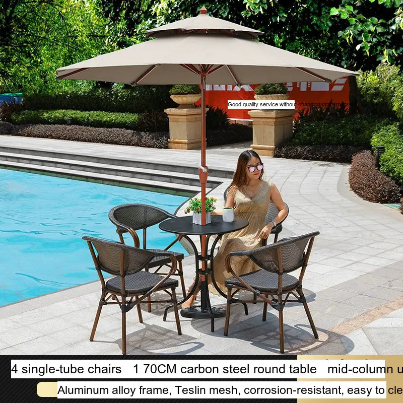 The essence of rustic charm is captured in the ZILI Alejandro dining set, harmonizing traditional elements with a modern twist. The robust table boasts a rugged tabletop supported by sturdy, tapered legs, which are designed to be both functional and stylish. The warm tones of the wood provide a welcoming ambiance, while its natural imperfections celebrate the beauty of individuality. This dining set effortlessly complements various decor styles, from country chic to industrial lofts, ensuring your dining space feels both comfortable and inviting.