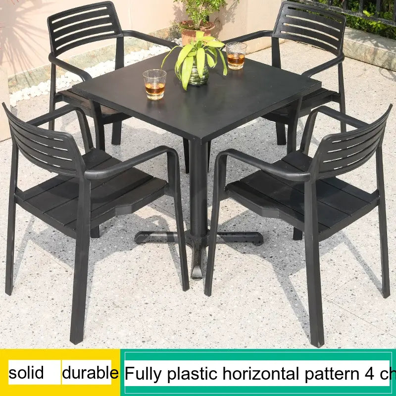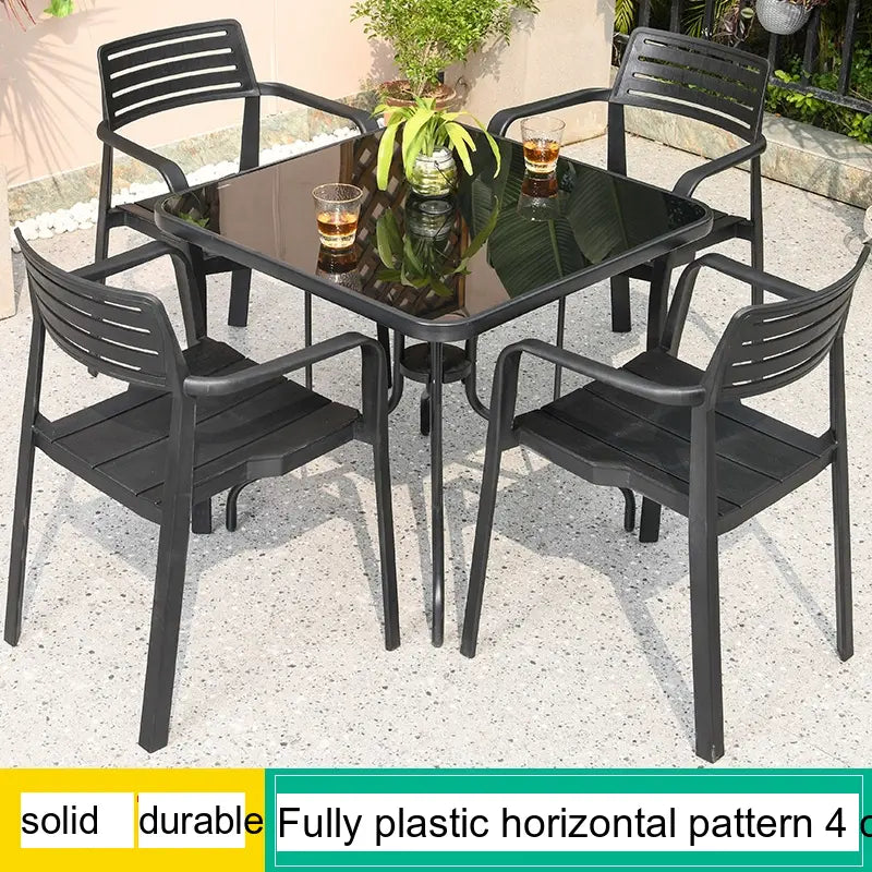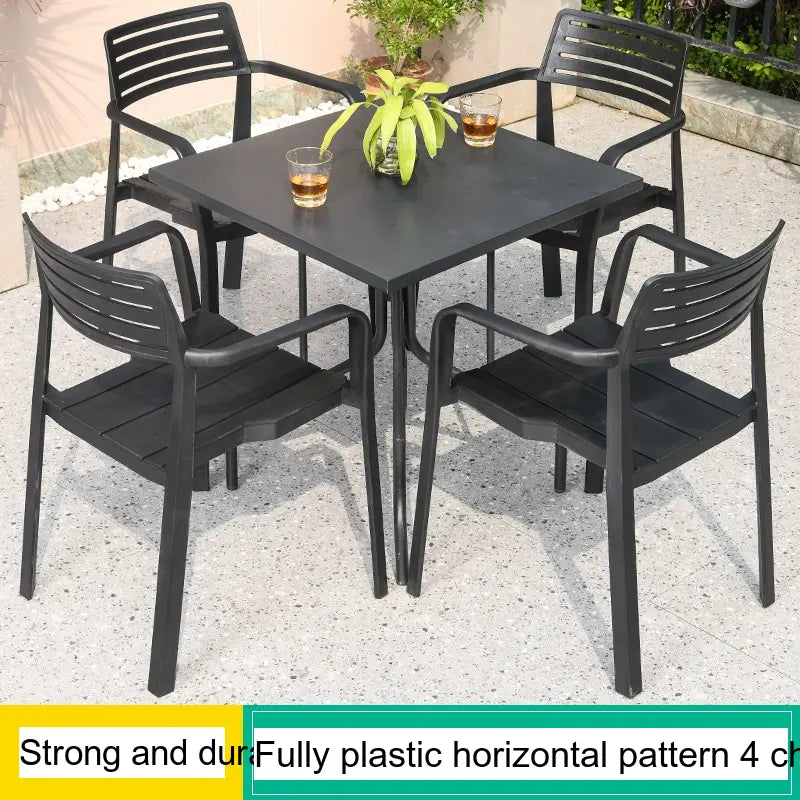 This versatile garden dining set is engineered with user-friendly convenience in mind. The lightweight nature of the furniture facilitates effortless rearrangements, allowing you to tailor your outdoor setup to fit any occasion. The set comprises a functional dining table and four ergonomically designed chairs, perfect for both intimate dinners and lively garden gatherings.