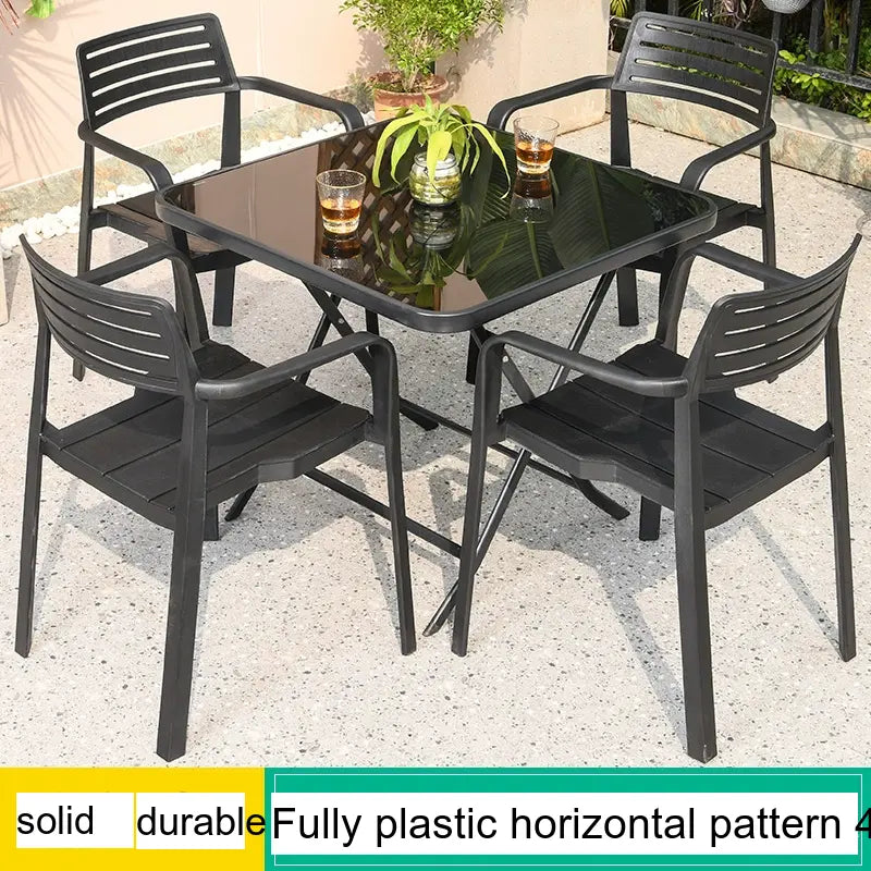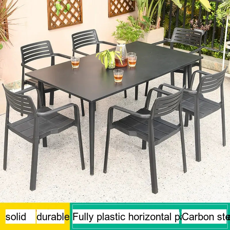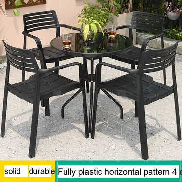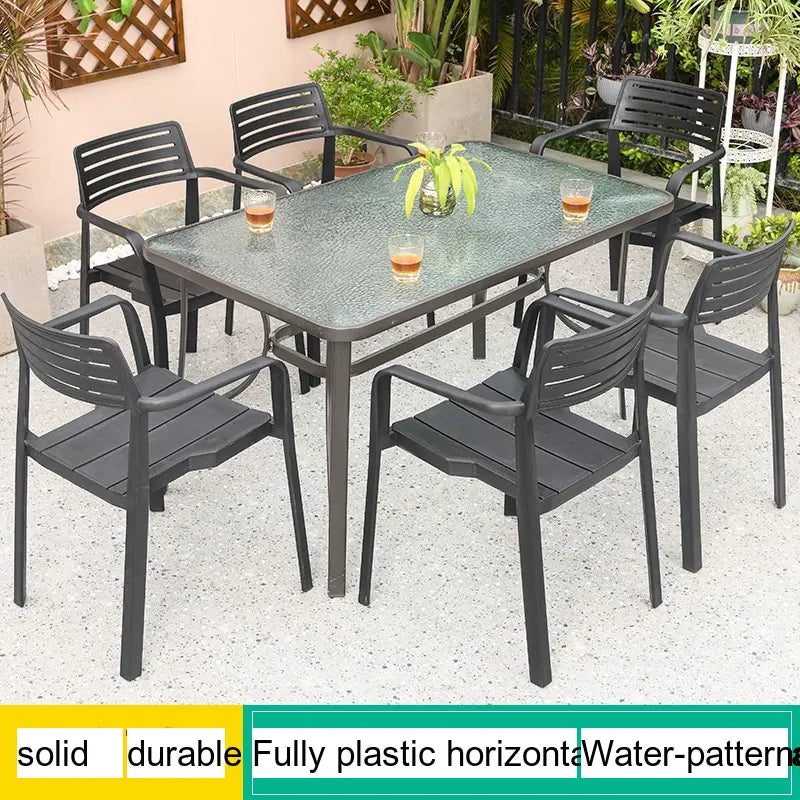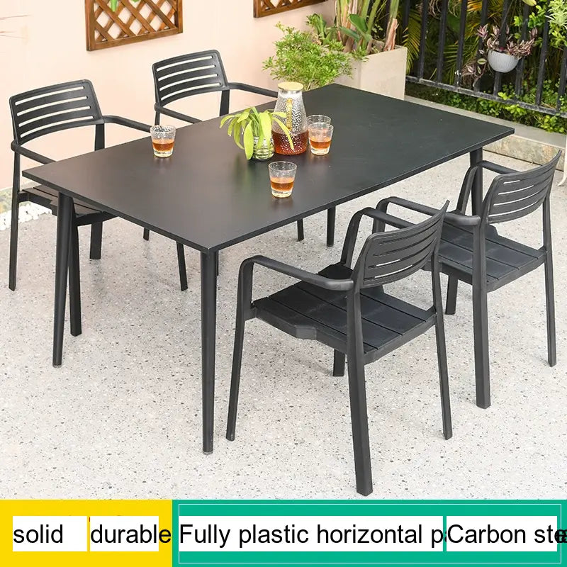 Main Material: This dining set is constructed from eco-friendly, high-quality engineering polypropylene PVC, renowned for its environmental benefits without sacrificing durability. This material not only resists the effects of UV rays and rain but is also lightweight and recyclable, making it an ideal choice for environmentally conscious consumers.