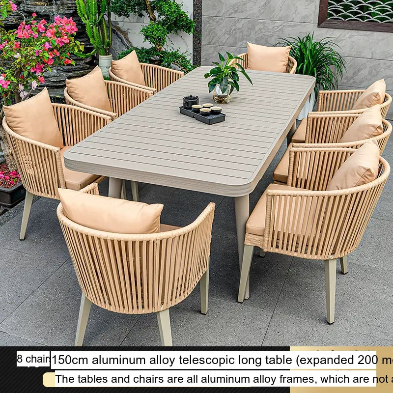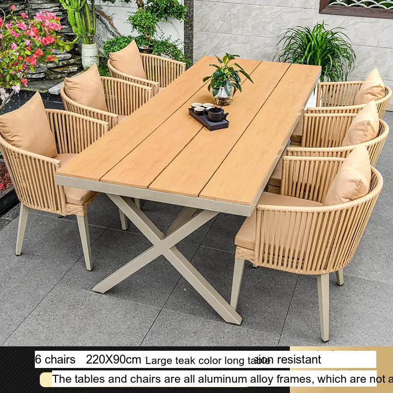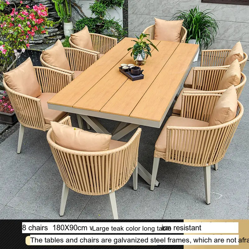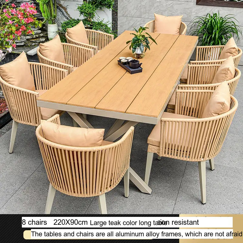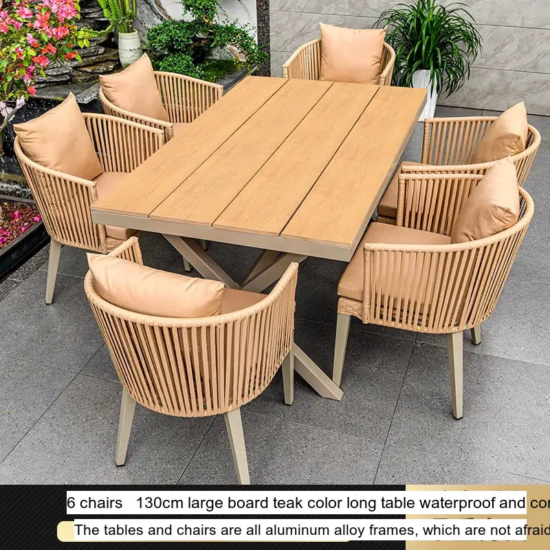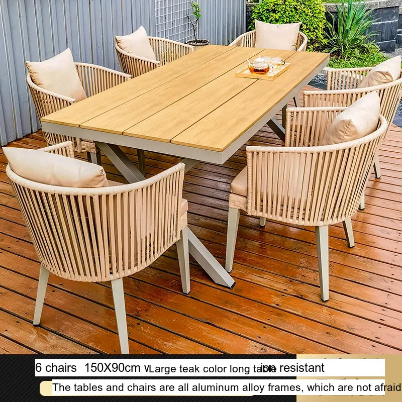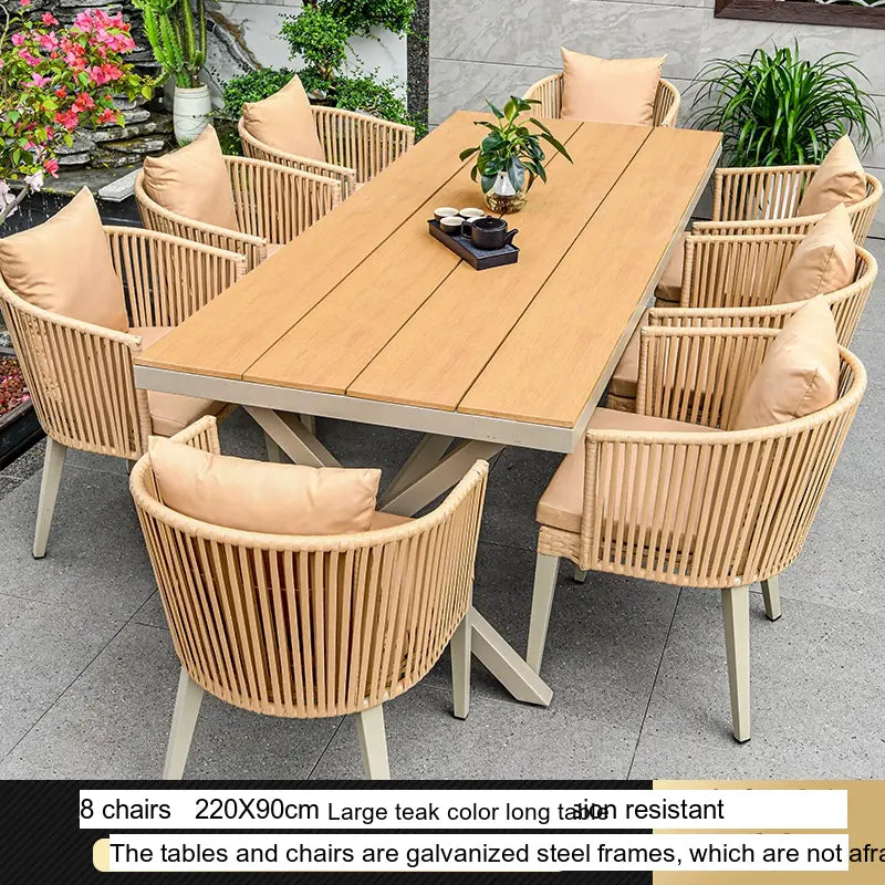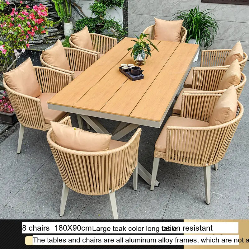 - Customizable Arrangements: The Thorne set is available in flexible configurations to meet your needs. Choose from 4, 6, or 8 chairs paired with spacious teak long tables ranging from 130CM to 220CM, offering ample room for both dining and relaxation, perfect for gatherings with family and friends.