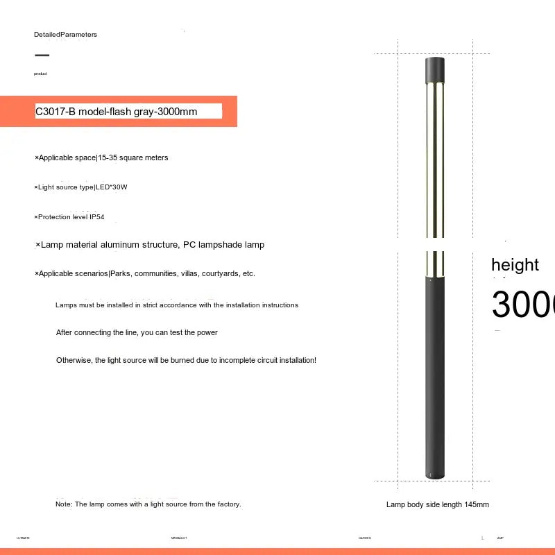 - Durable Construction: Made from high-quality aluminum for the lamp body and PC materials for the lampshade, this street lamp is built to last. The robust construction ensures that it can handle impact and resist corrosion, making it suitable for outdoor use.