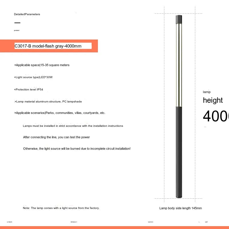 - Multiple Size Options: Available in various sizes, including 800mm, 1500mm, 2000mm, 2500mm, 300cm, 3500mm, and 4000mm, you can select the perfect height to suit your specific needs and preferences. Each option is designed to provide broad and effective illumination.