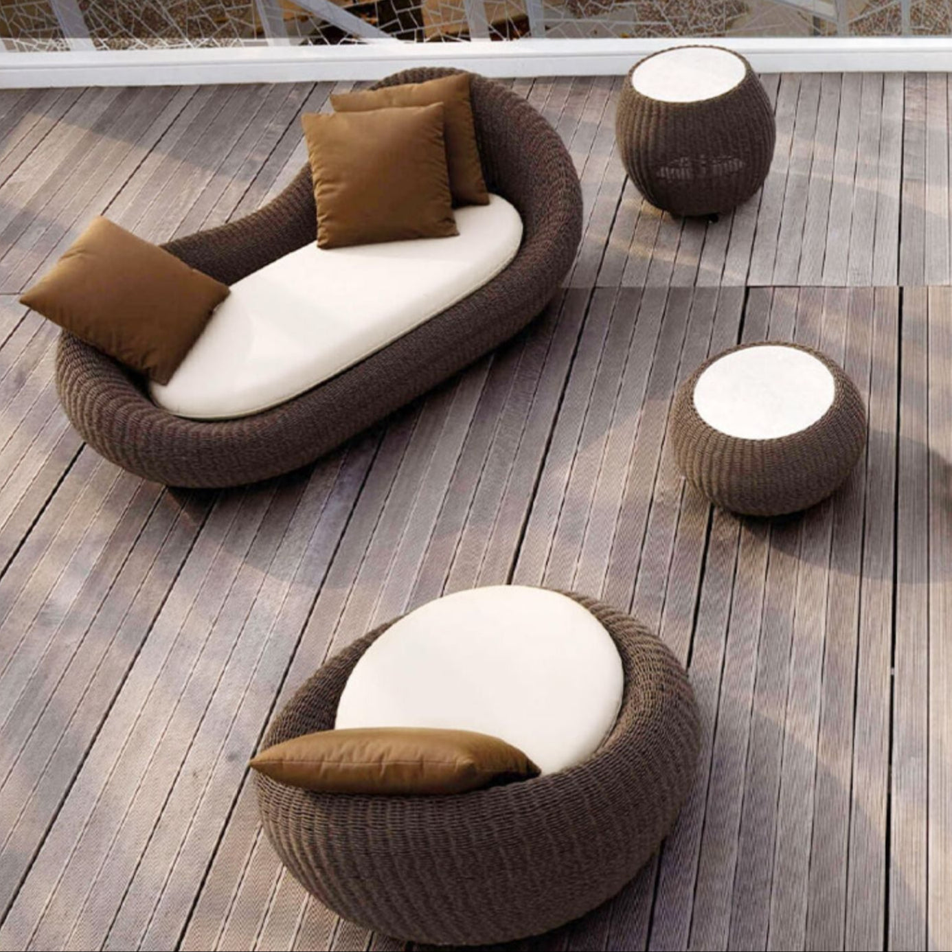 The DIME GARDEN Aurelia Coffee Table Set includes a variety of seating options that cater to all your social needs. Whether you want to lounge alone with a book or host a small gathering, this set is designed for a combination of uses, accommodating various group sizes from solo relaxation to three-person gatherings. Its distinctive special shape and folk custom elements highlight unique weaving patterns that are both stylish and timeless.