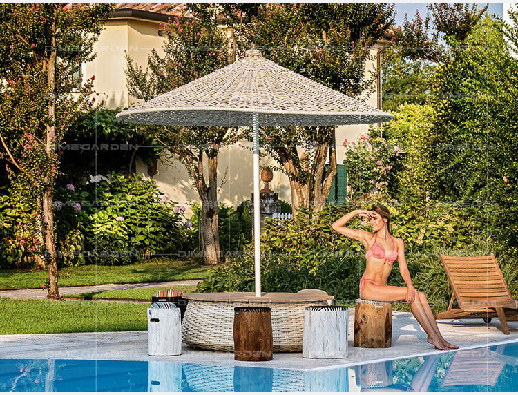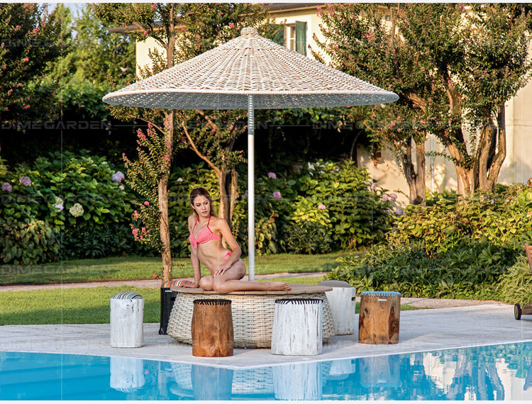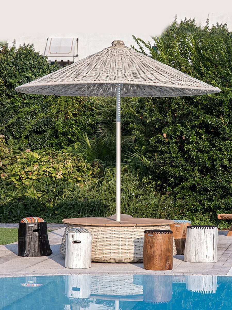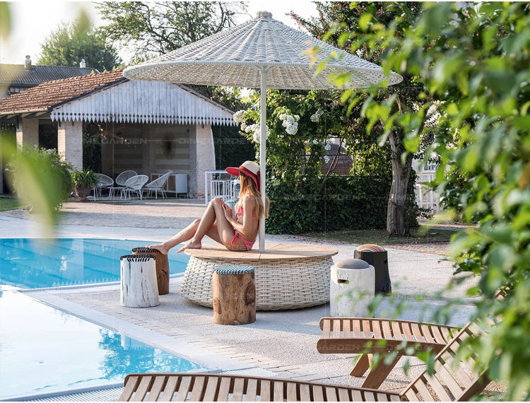 Constructed with durability in mind, the Seraphina is made from premium materials, including a sturdy rattan design and resilient metal components. This ensures long-lasting use, capable of withstanding the elements while retaining its beauty. The umbrella features a weather-resistant braided core and UV-resistant fabric to keep you cool and protected, even on the sunniest of days.
