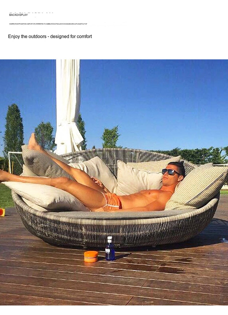 This premium outdoor lounge bed is available in sizes ranging from 1.4m to 2.0m and offers options for both aluminum and iron frames. Regardless of the configuration, the structure is heavy-duty and can withstand significant weight loads while maintaining its form. The high-temperature paint treatment not only beautifies the bed but also provides oxidation resistance, ensuring the lounge bed remains pristine over long-term use.