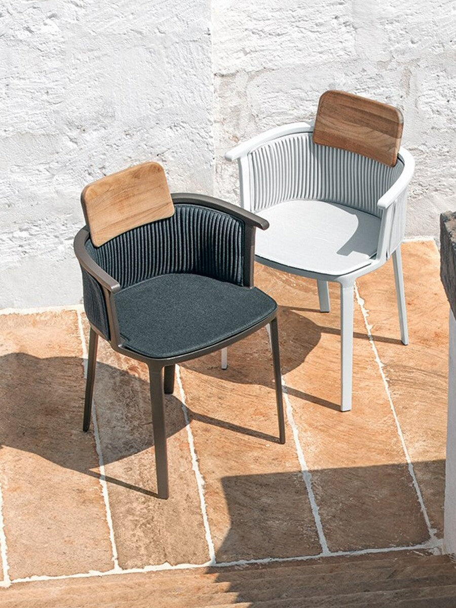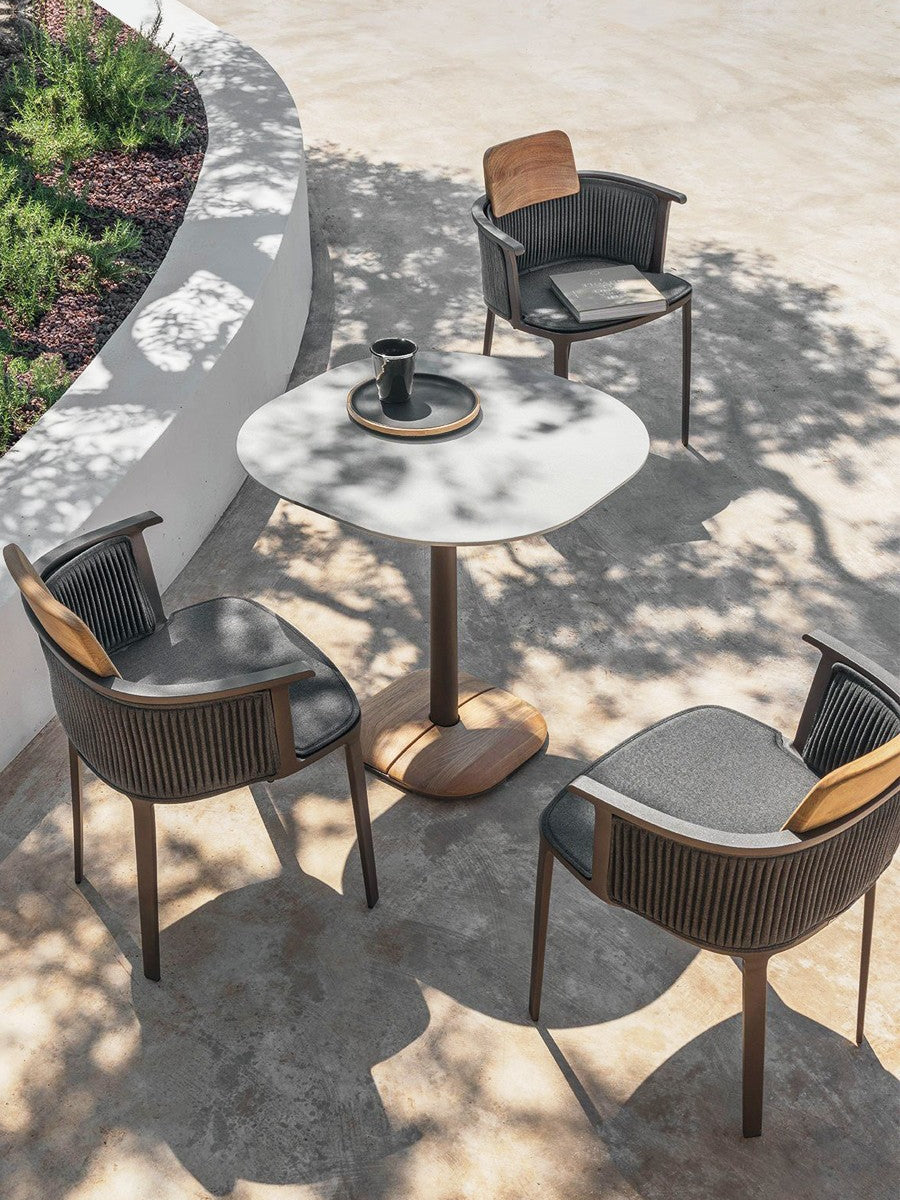 Inspired by Southeast Asian designs, this collection showcases an artful pattern and smooth lines that create a relaxed yet elegant atmosphere. The combination of natural textures and beautiful color finishes can effortlessly enhance your outdoor décor. The visual appeal is further accentuated by its contemporary design, making it a conversation starter for all your outdoor gatherings.